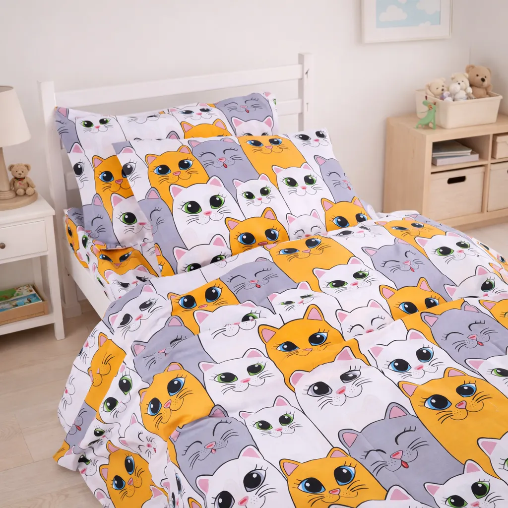 Комплект постельного белья Бязь JUNIOR 17-0636 Кіт батон Помаранчевий