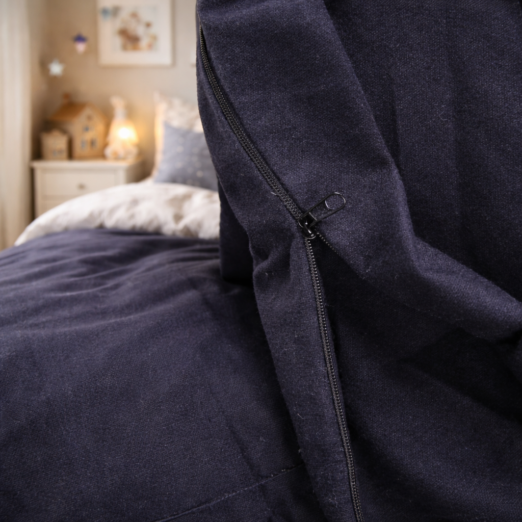 Используются только натуральные и безопасные ткани. Защитный бегунок на молнии предотвращает контакт с кожей. Материалы не содержат вредных компонентов. Спокойствие родителей и комфорт ребенка.