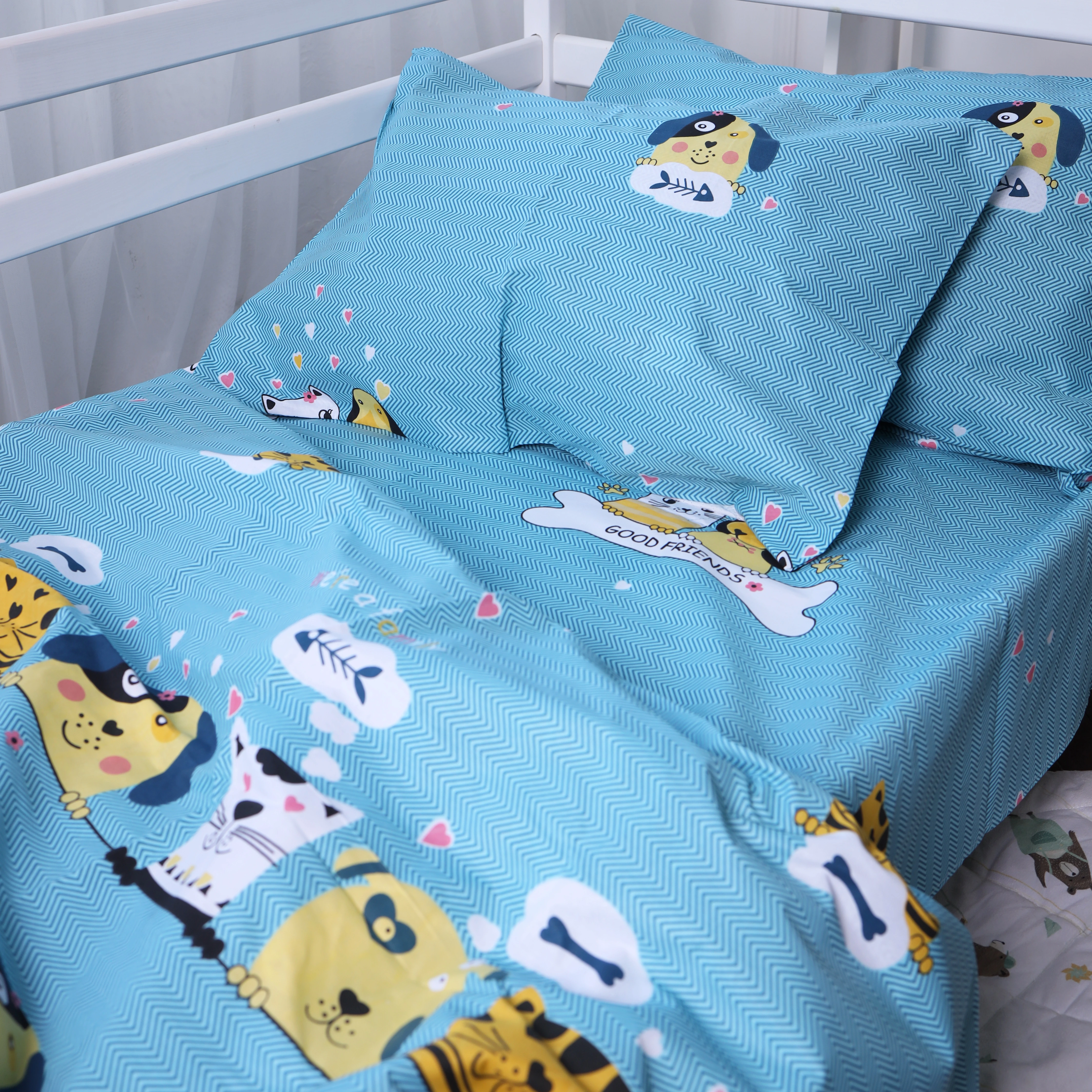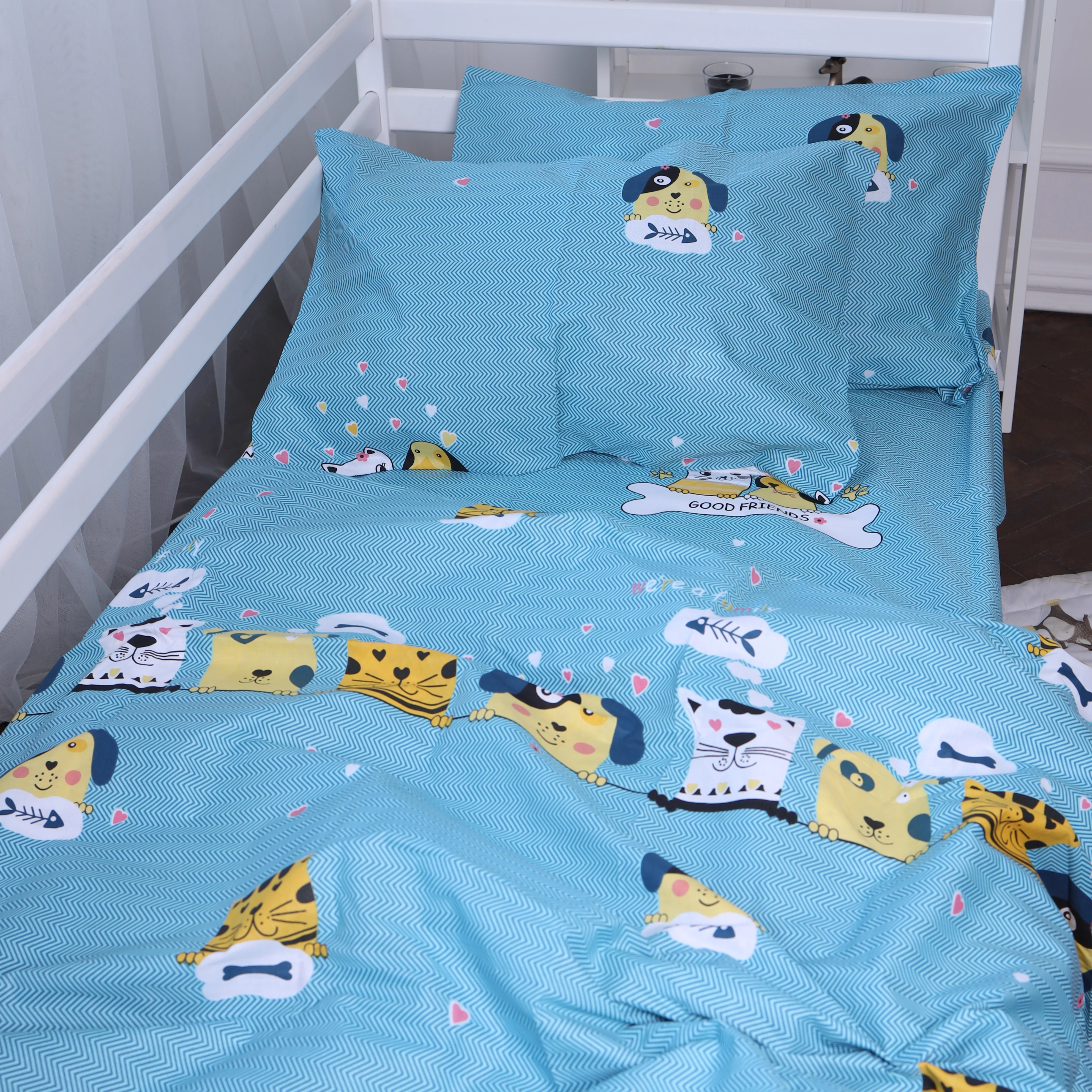 Простынь на резинке (бязь) Kids Time - высота 10 см 17-0518 Cat-dog blue