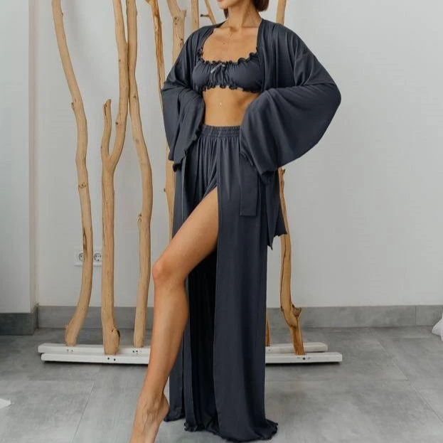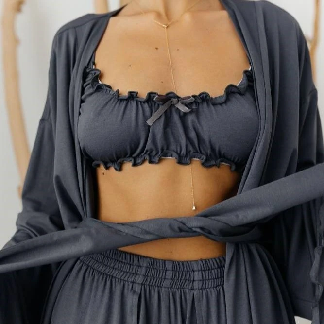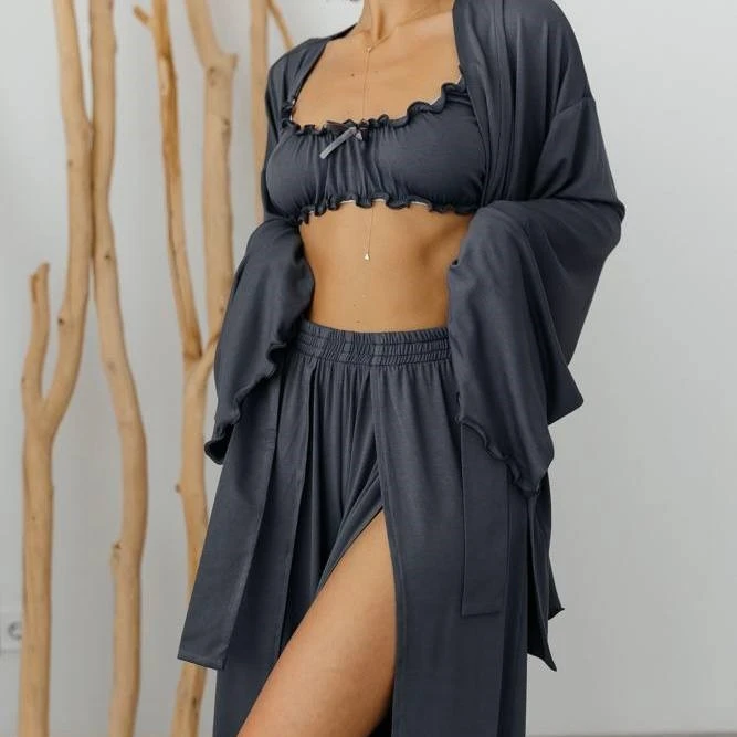 Женский домашний костюм (халат+топ+штаны) "Giulia" gray