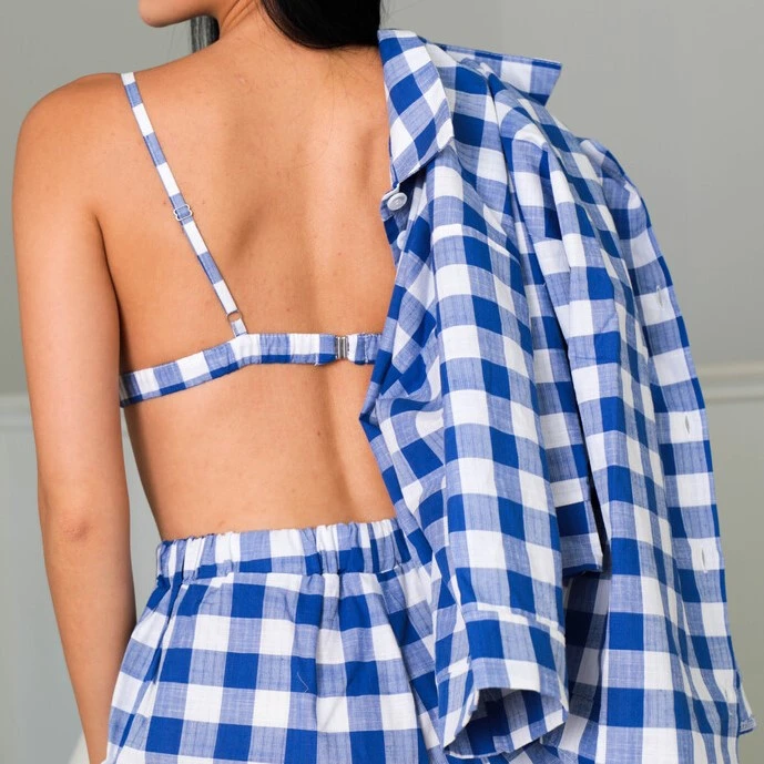 Женский домашний костюм (Шорты+рубашка+бра) "Victoria" blue