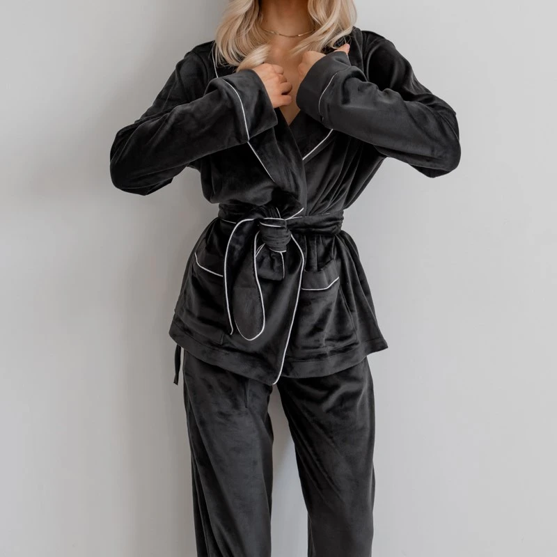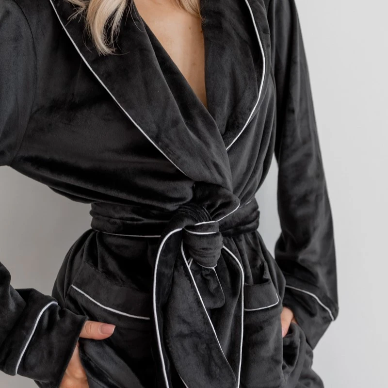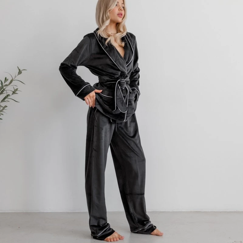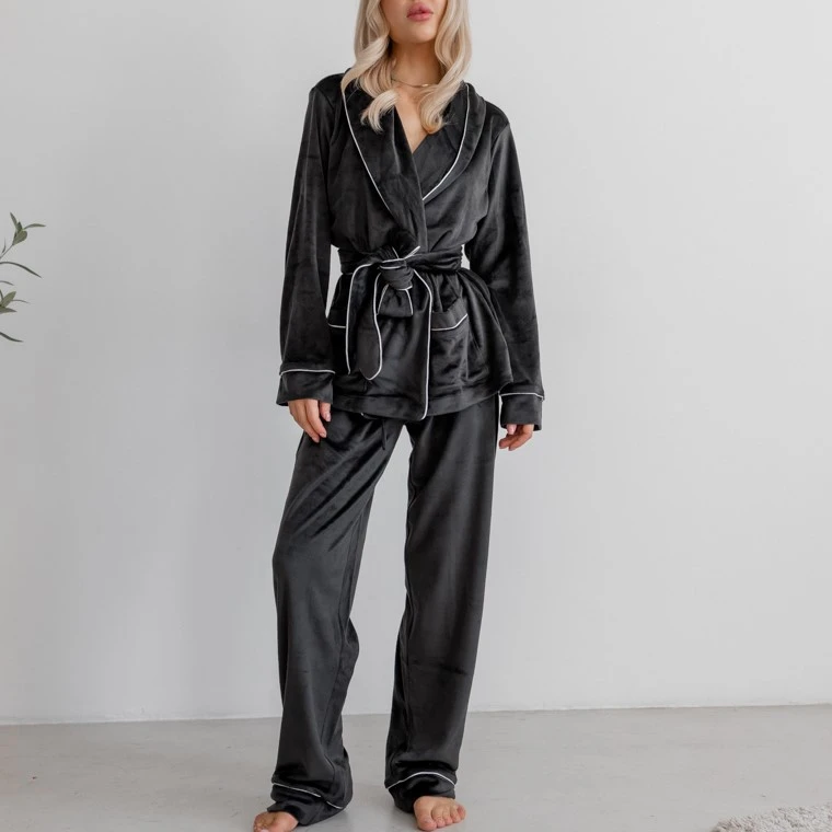 Пижама женская Велюровая "Velor black" на запах