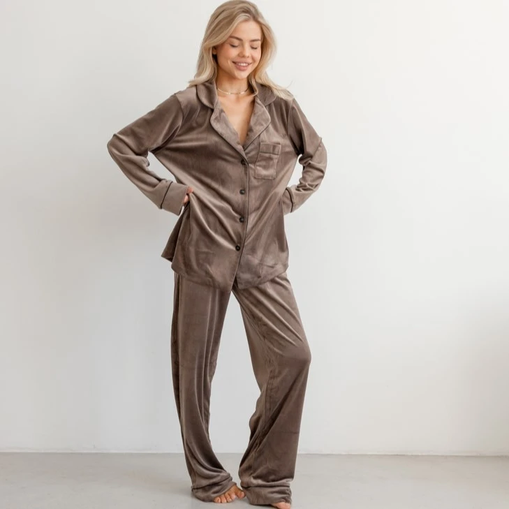 Пижама женская Велюровая "Velor brown" на пуговицах