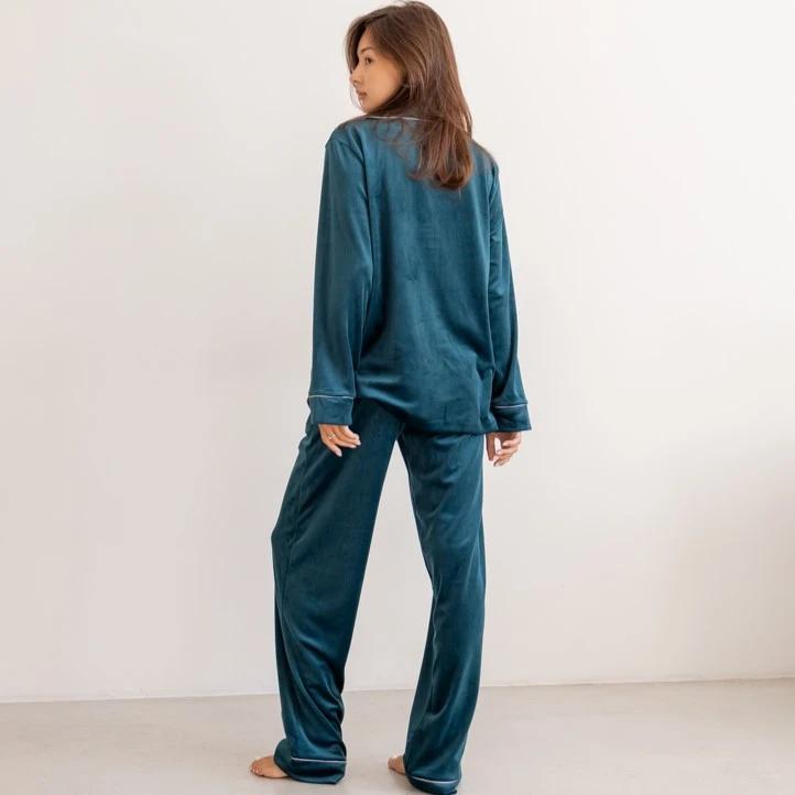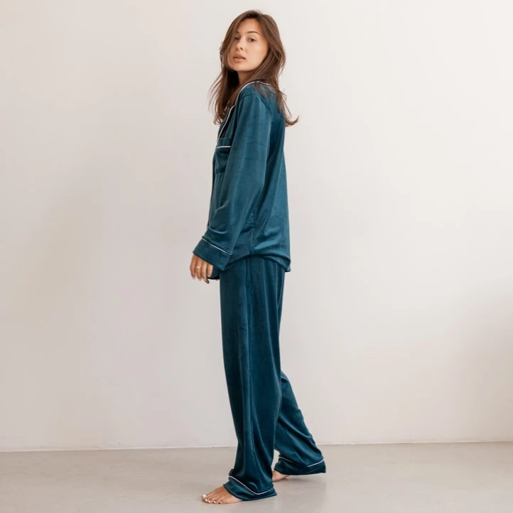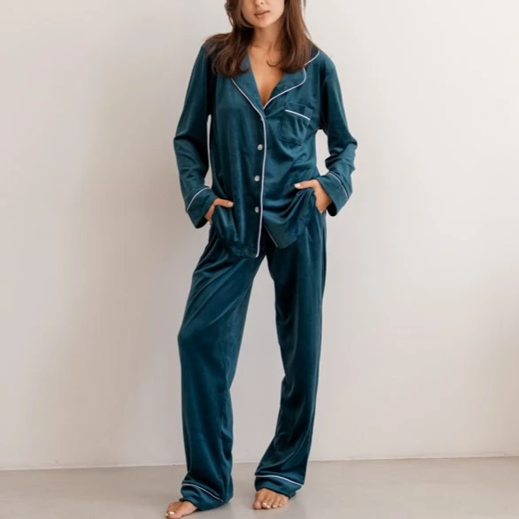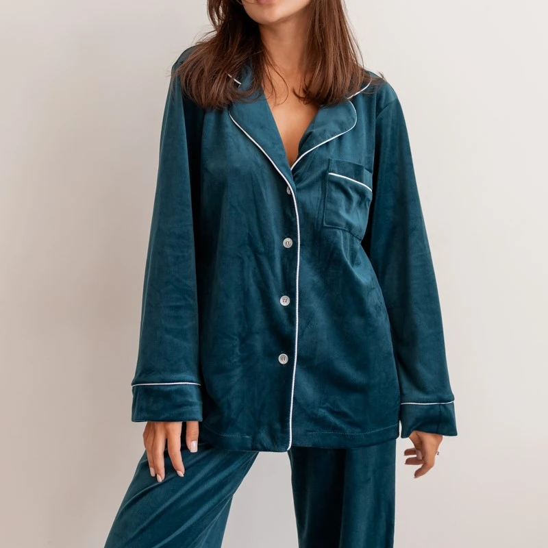 Пижама женская Велюровая "Velor emerald" на пуговицах
