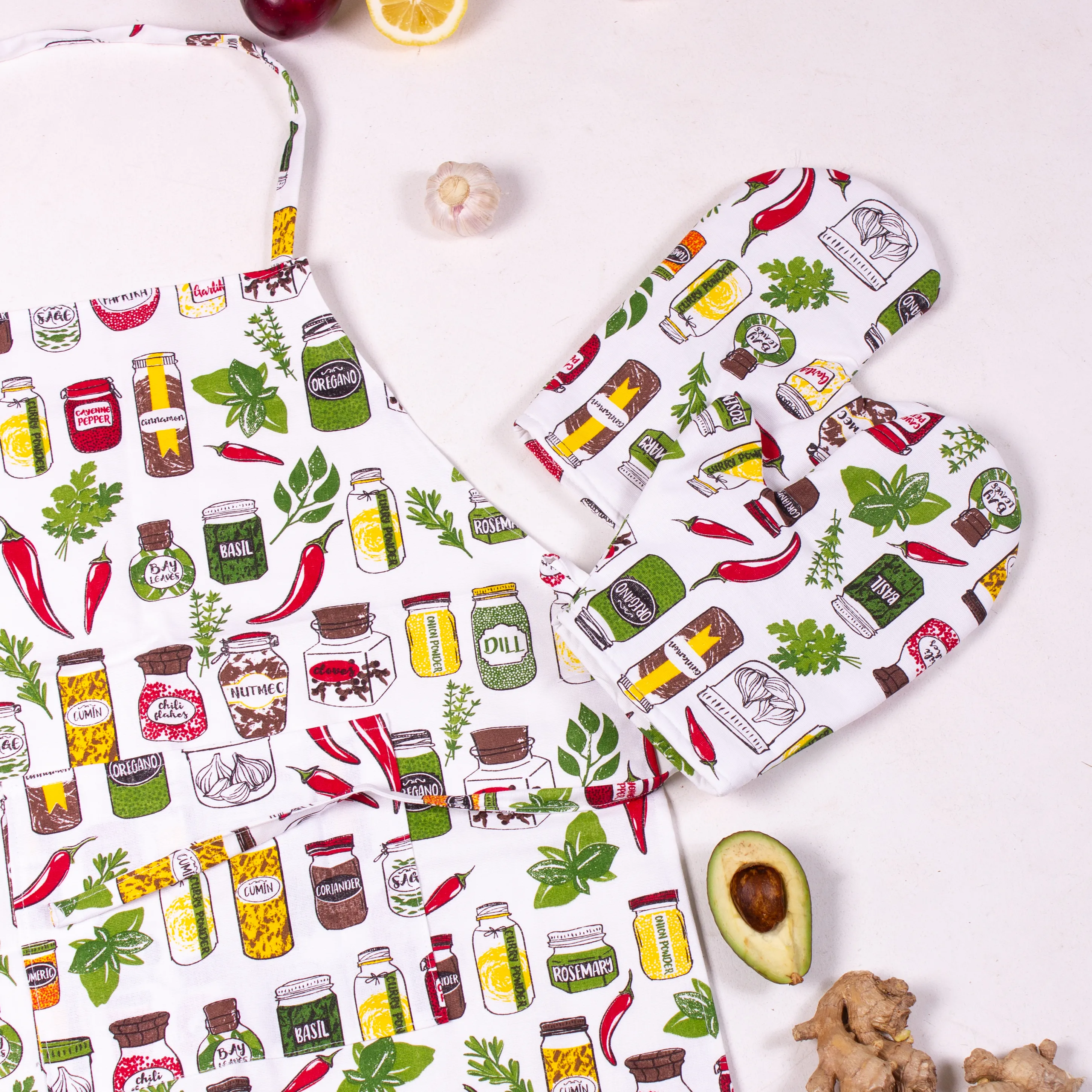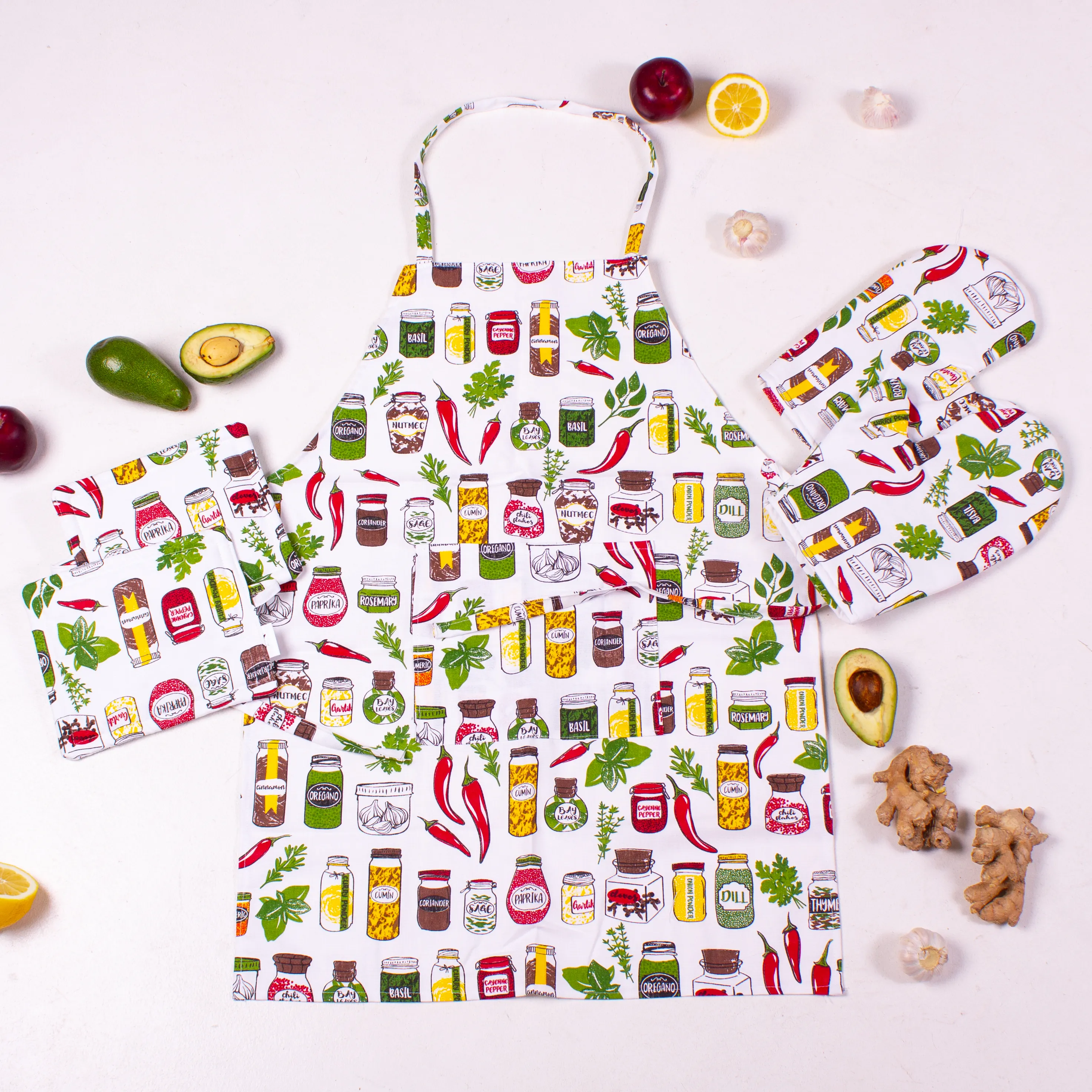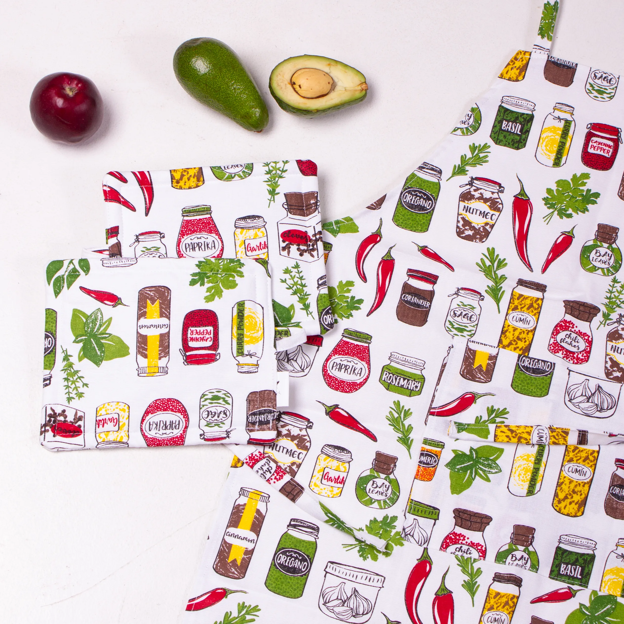 Набор №212 - Spices (прихватки 2 шт., перчатки 2 шт., передник 1 шт.) Рогожа/Полупанама