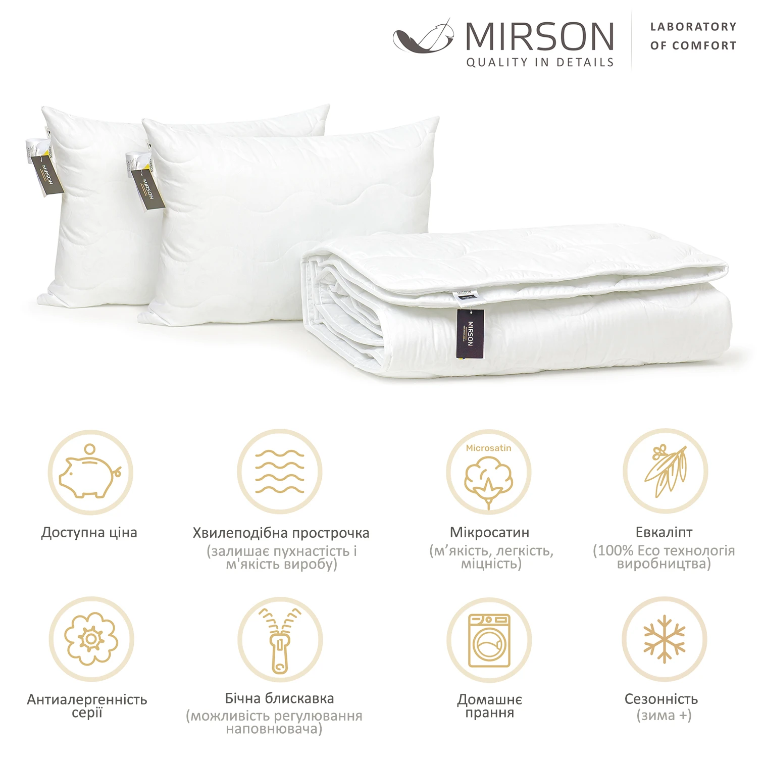 Набор антиаллергенный Эвкалиптовый Супер Теплый №1702 Eco Light White (одеяло + подушки 50*70 средние)