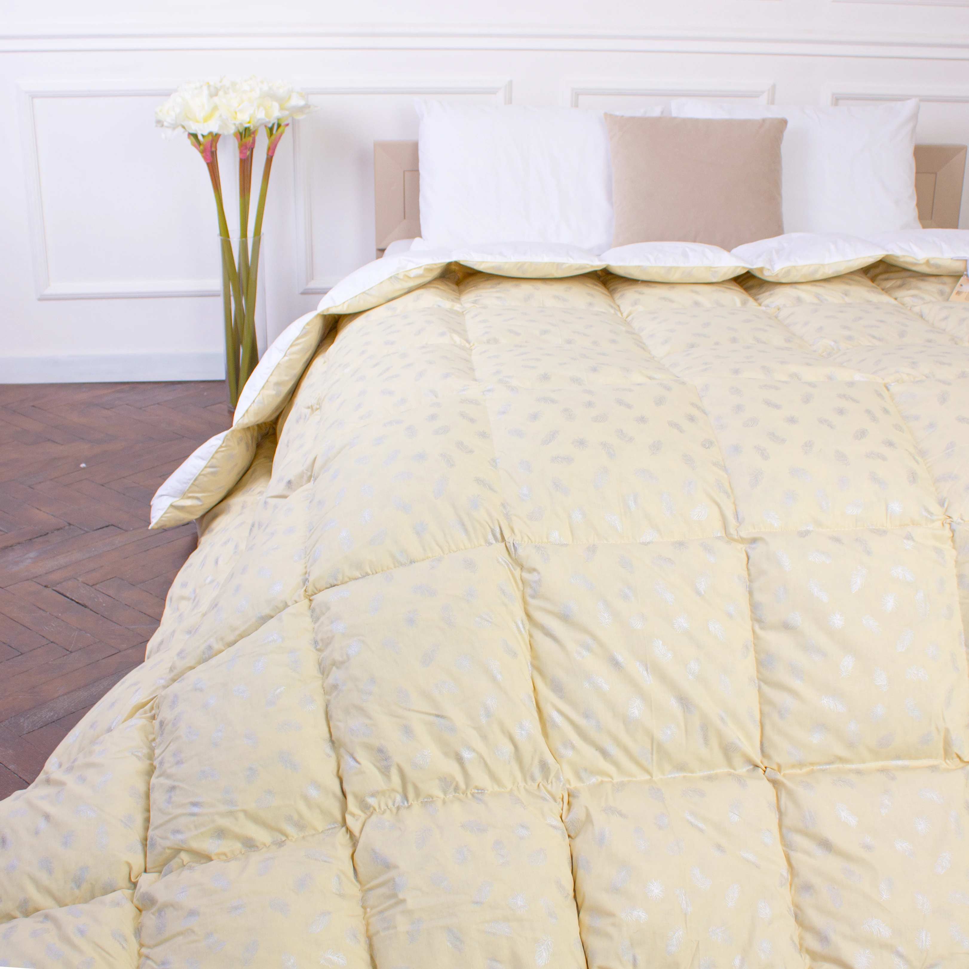 Одеяло пуховое KARMEN №1854 "Bio-Beige" 90% серый Bio пух тик (зима+)