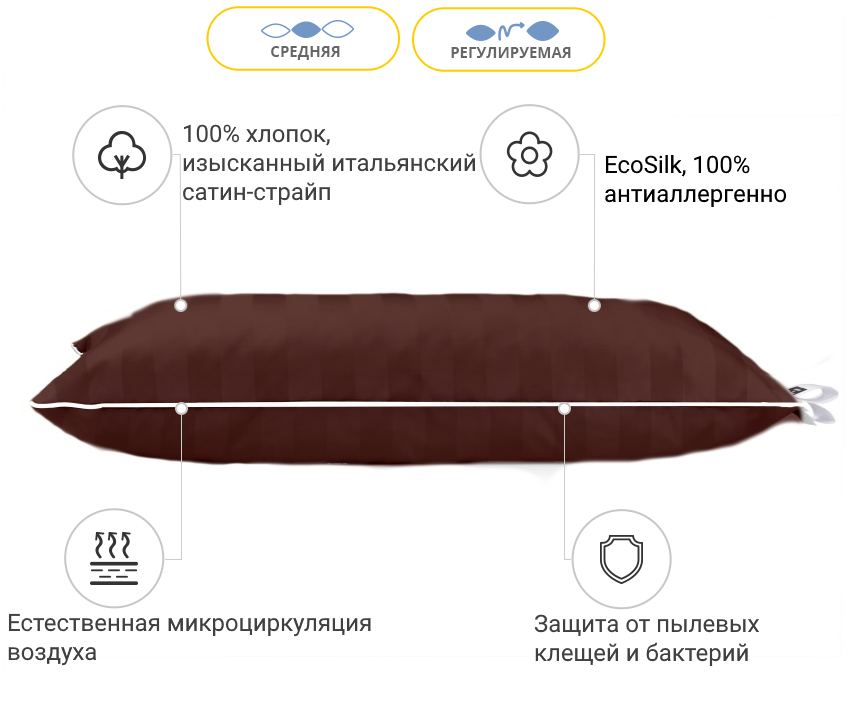 Антиаллергенная подушка Lorenzo №132 EcoSilk сатин-жаккард (средняя)