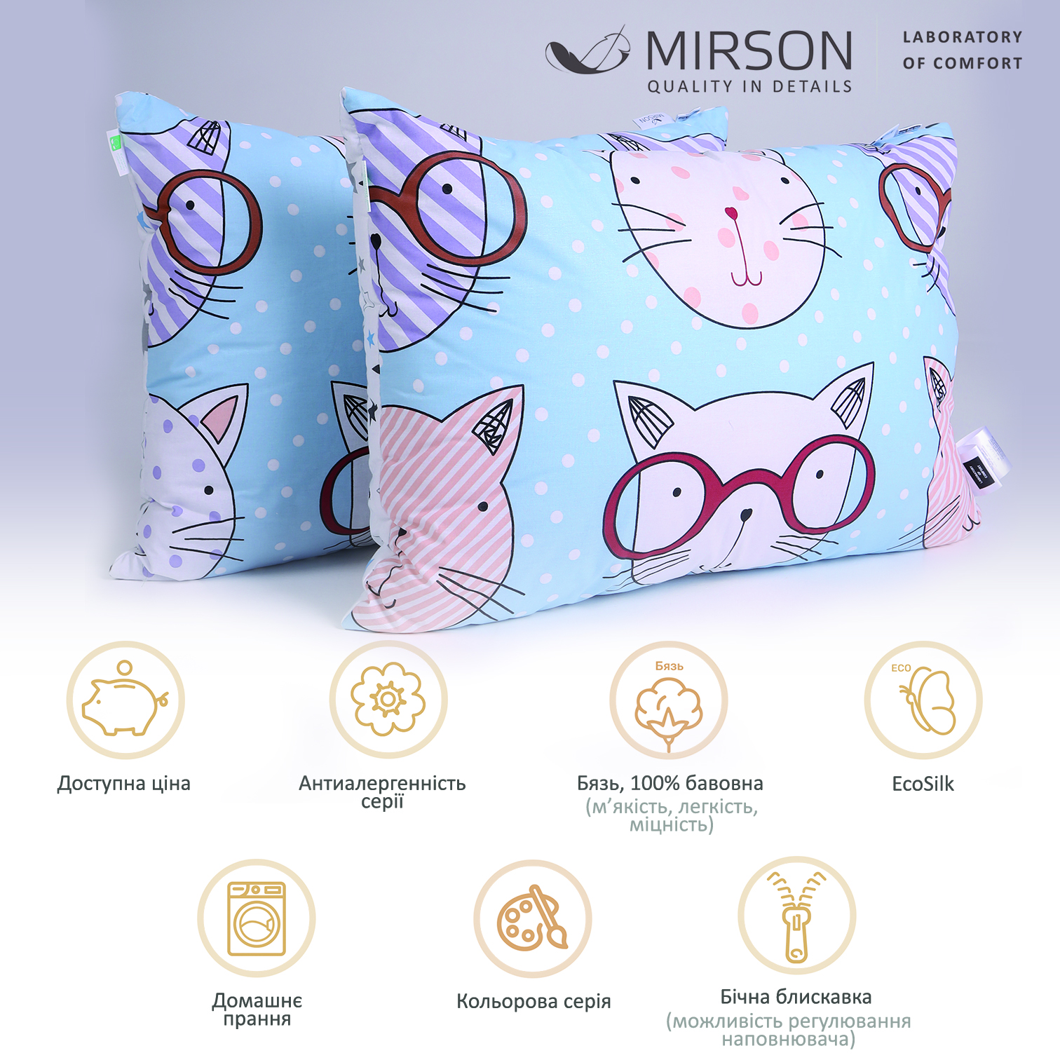 Набор антиаллергенных подушек Сolor Fun Line Whales №3097 EcoSilk бязь (средние)