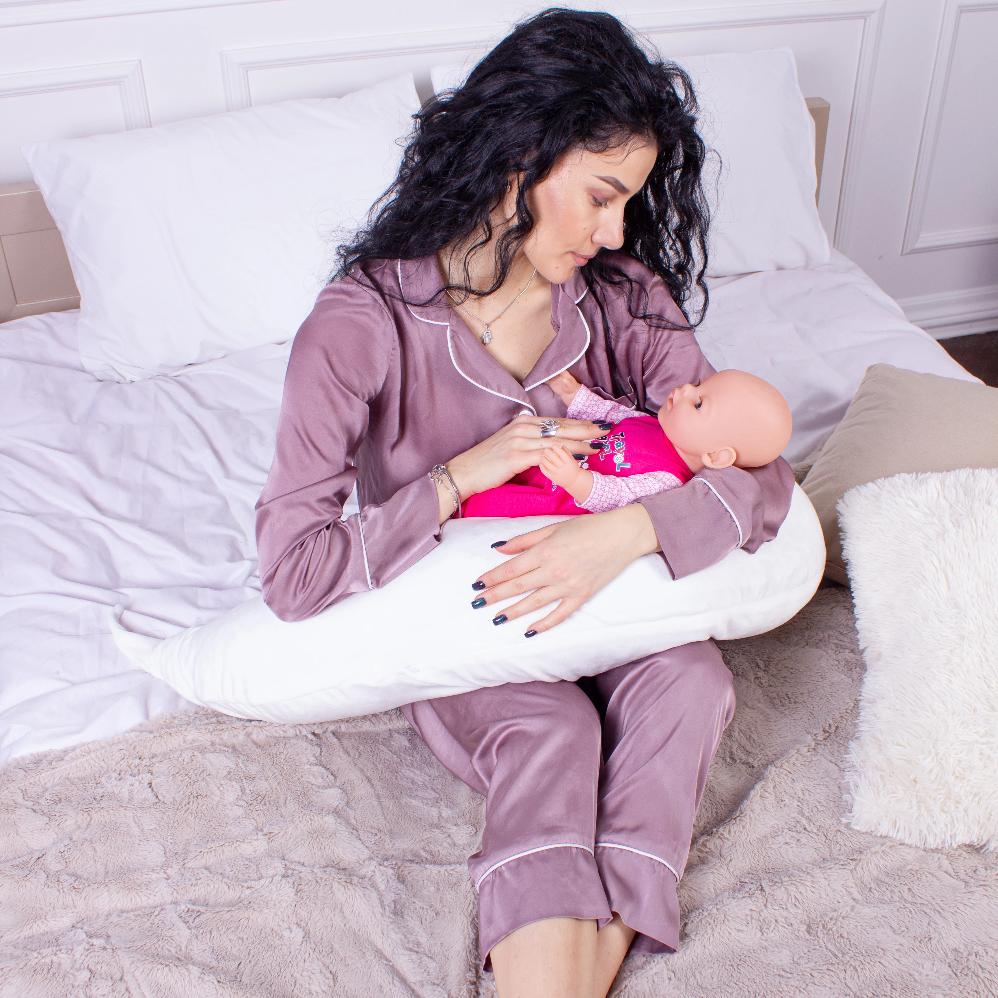 Подушка для беременных и кормления №8300 Velvet Line 28-0001 White EcoSilk велюр