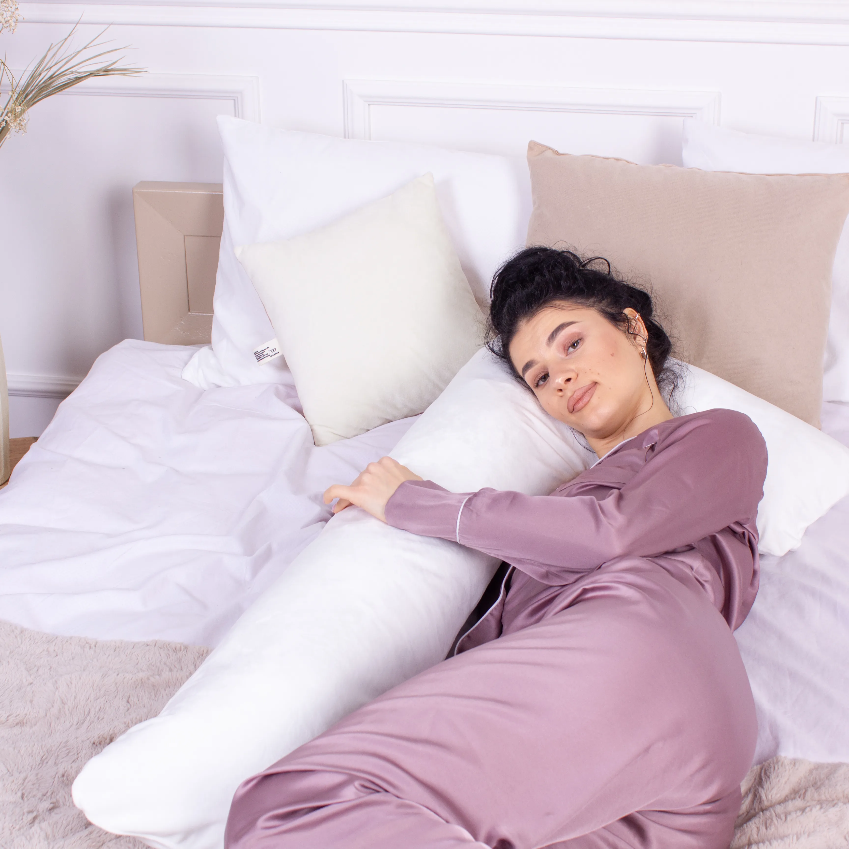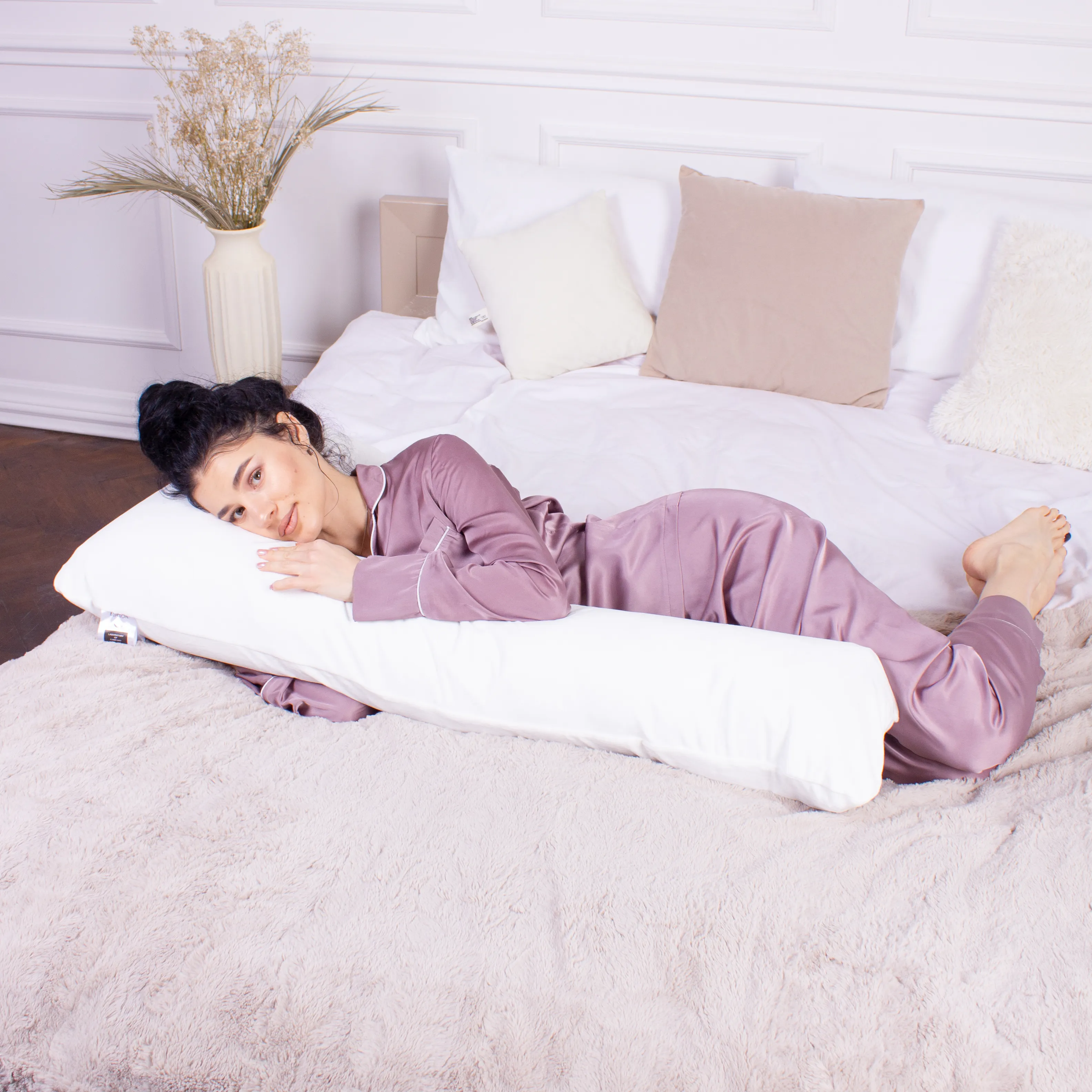 Подушка для беременных и отдыха Г-образная №8454 Velvet Line 28-0001 White EcoSilk велюр
