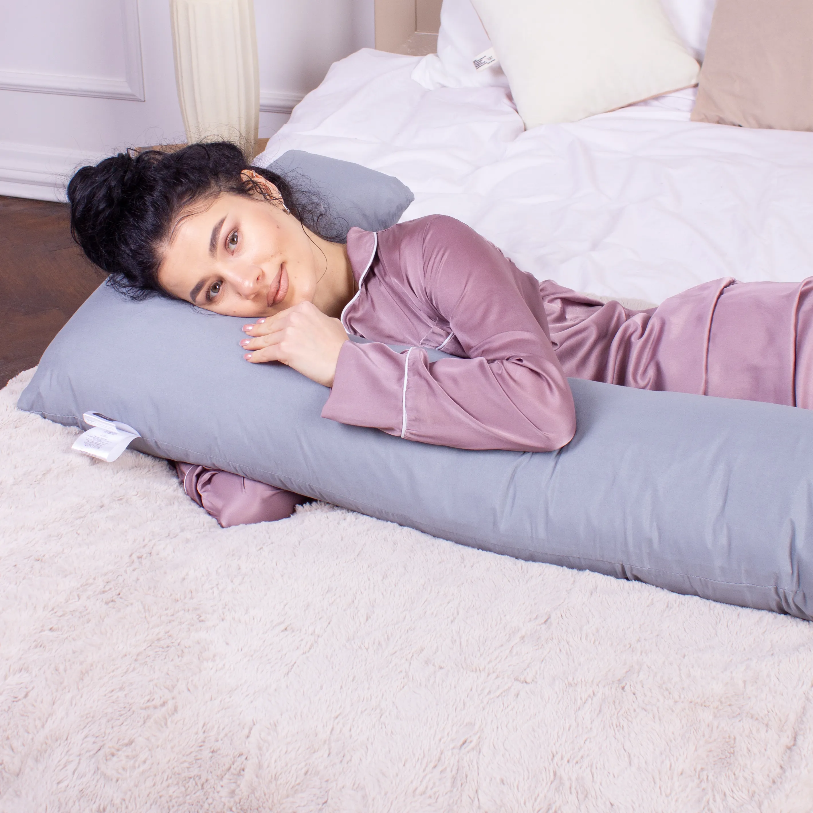 Подушка для беременных и отдыха Г-образная №8462 Eco Line Gray EcoSilk микросатин