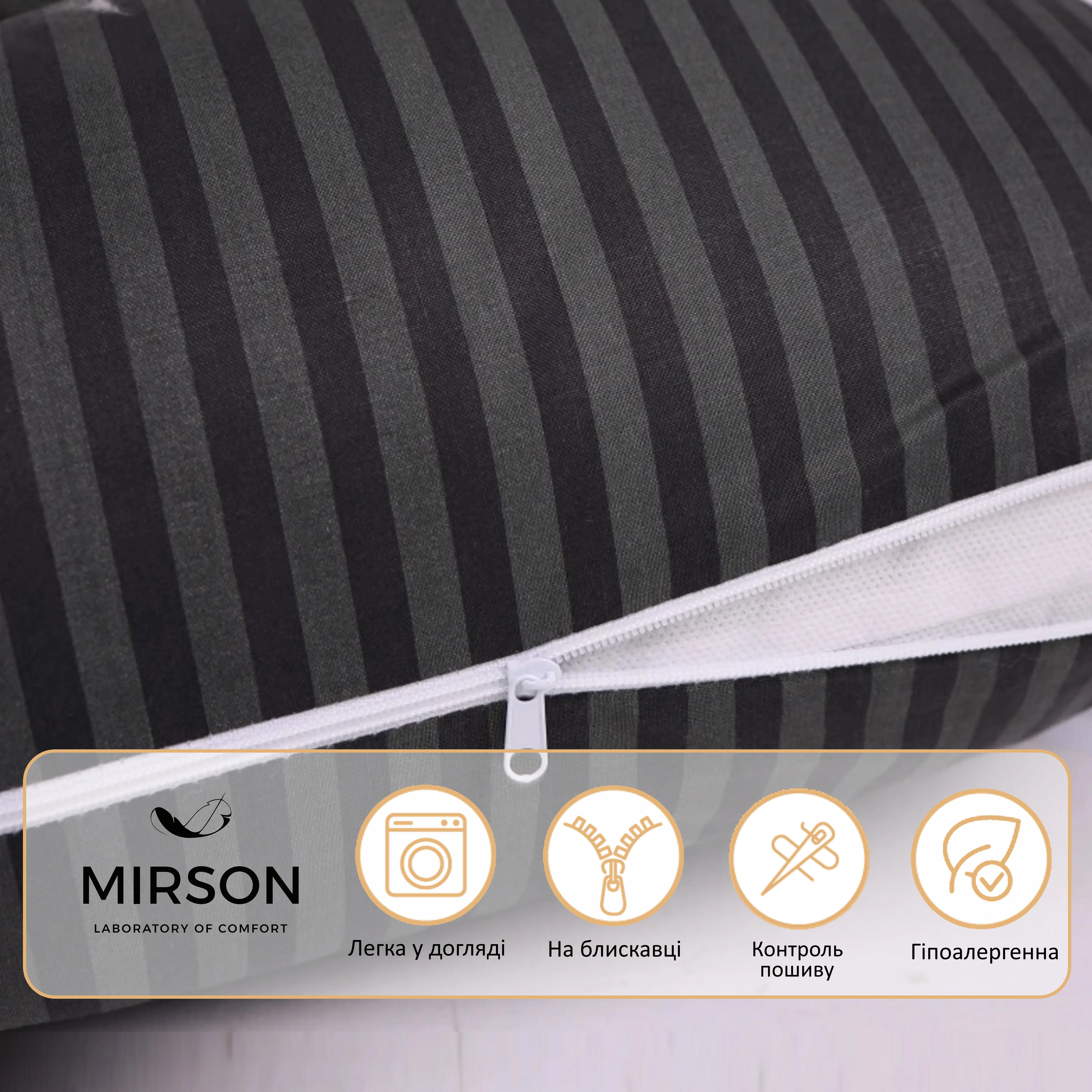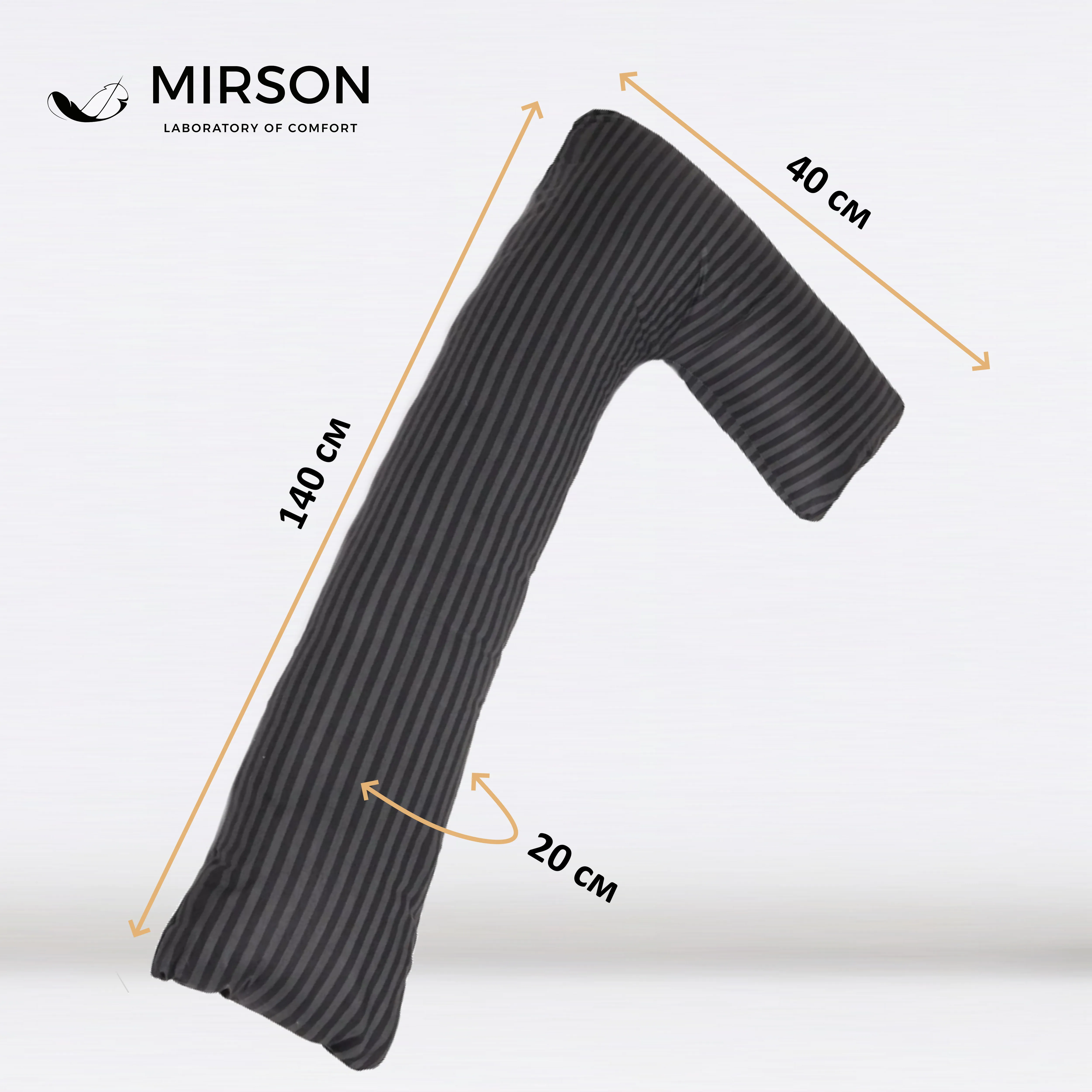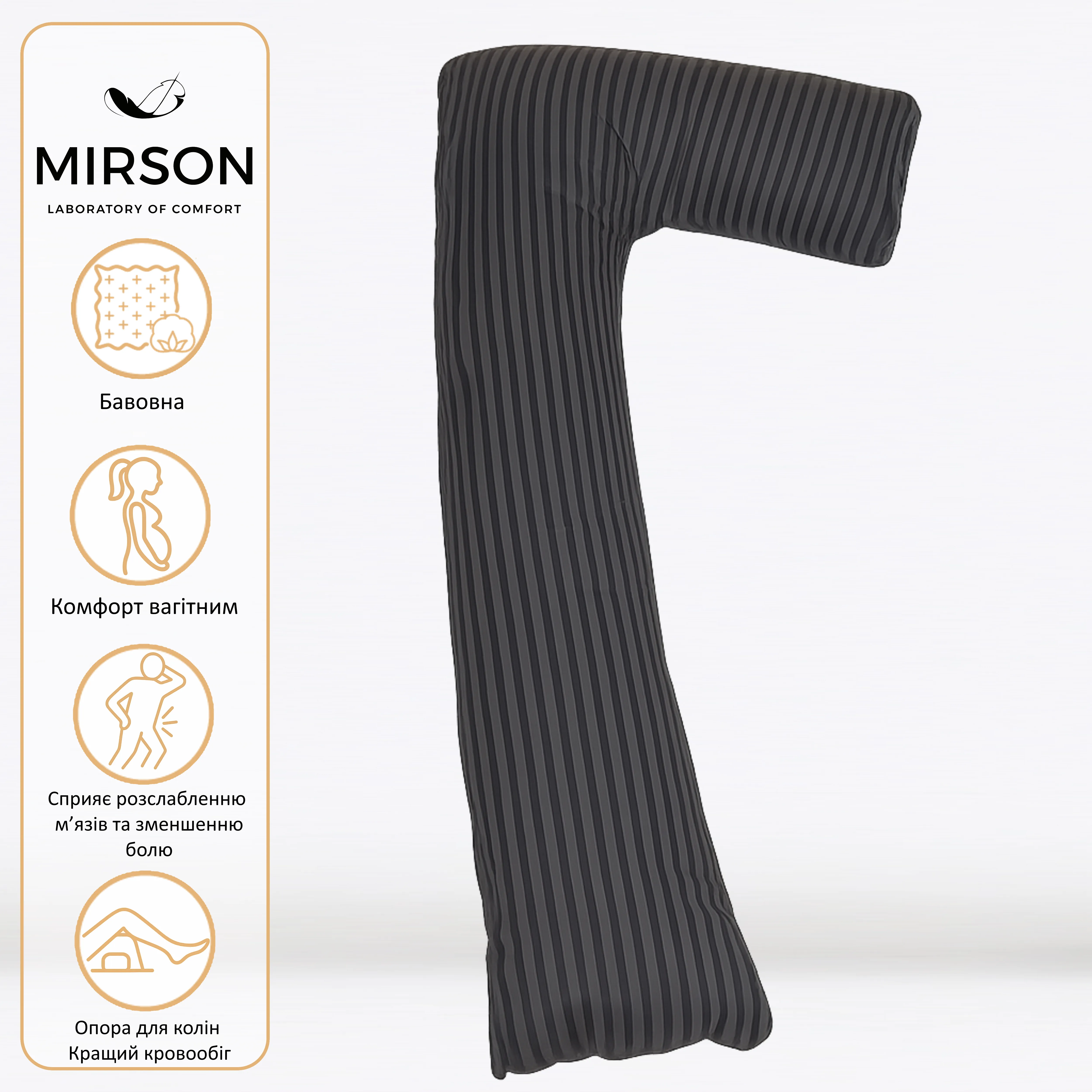 Подушка для беременных и отдыха Г-образная №5002 Color Line 17-0611 Stripe Black EcoSilk бязь