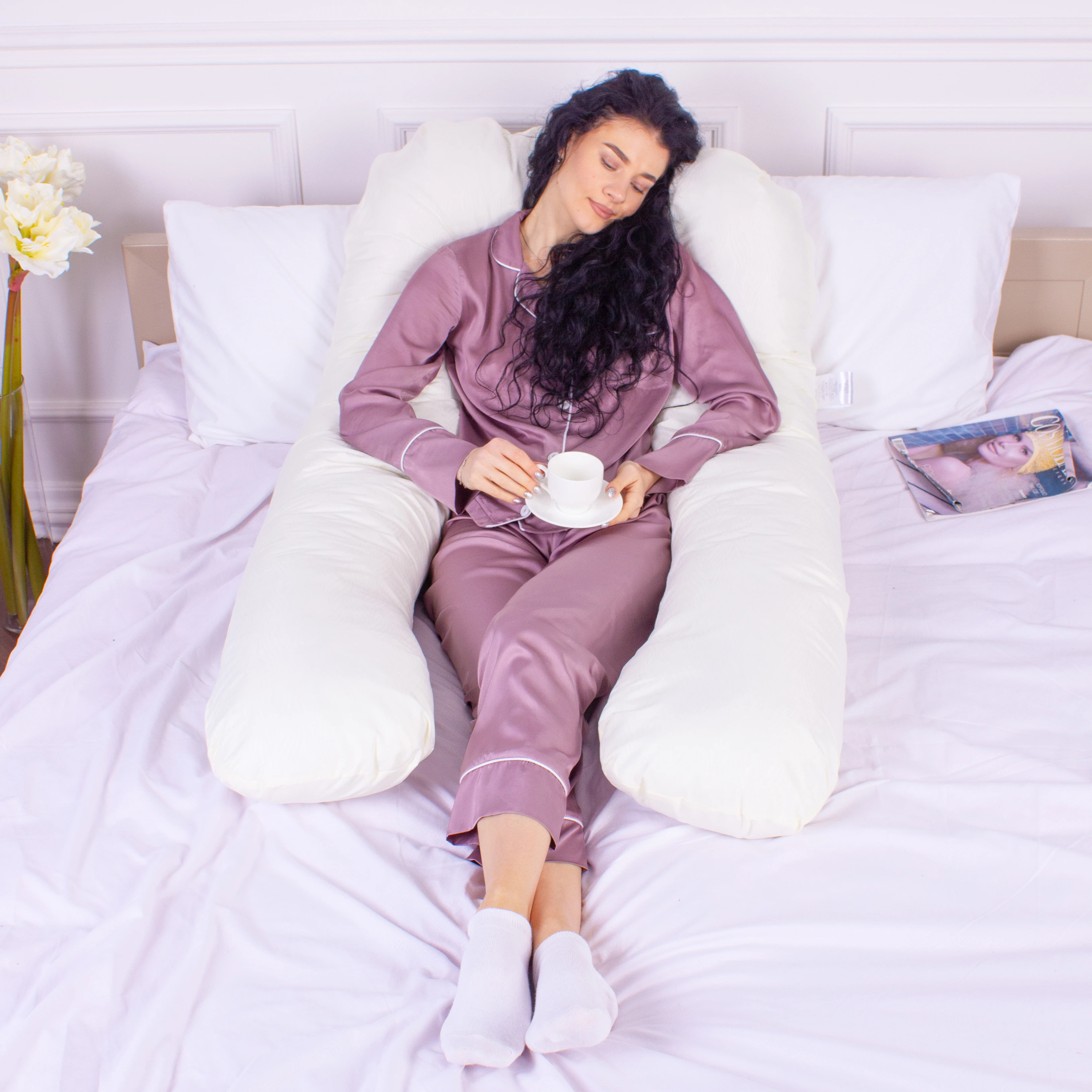 Подушка для беременных и отдыха U-образная № 8015 Eco Line "Creamy" EcoSilk микросатин
