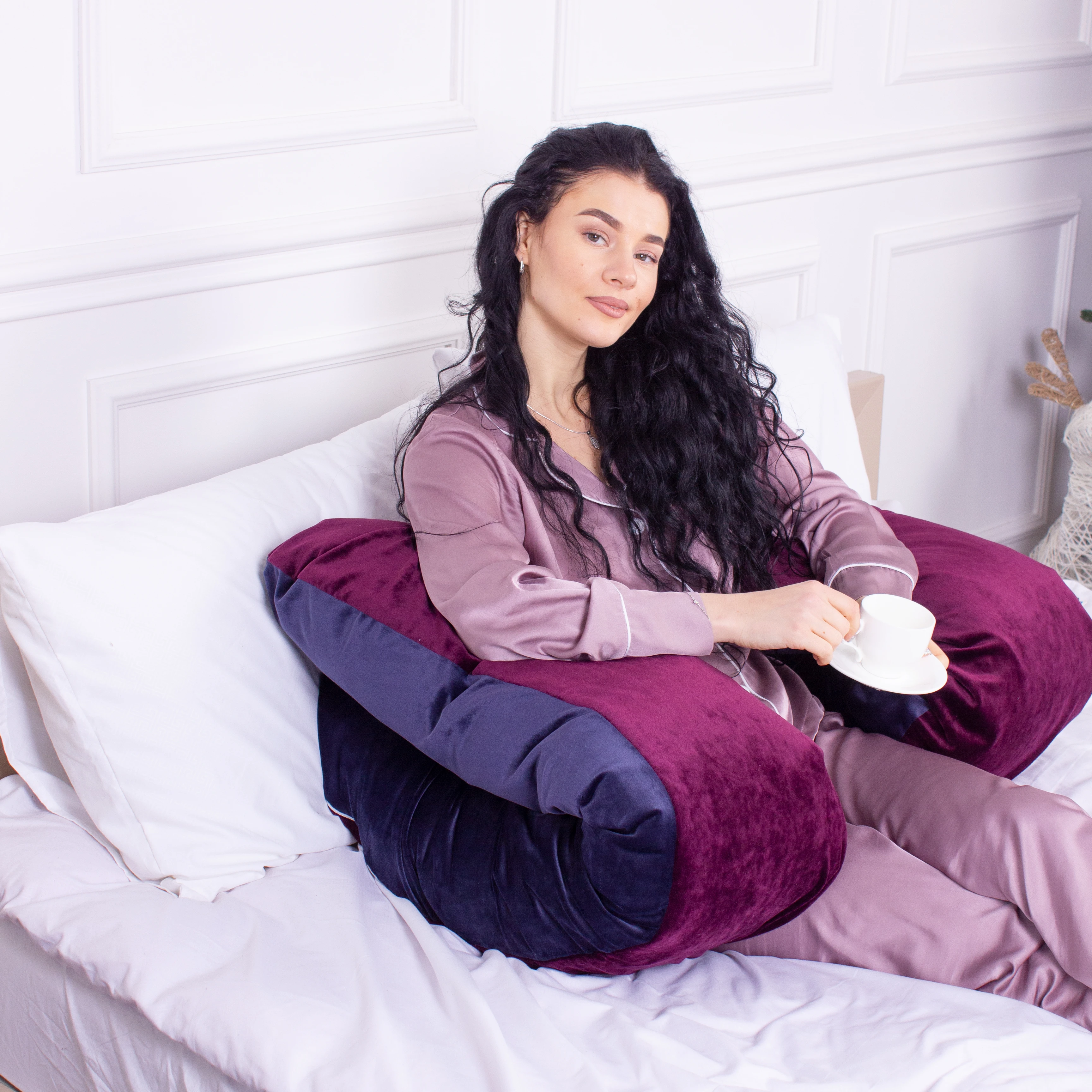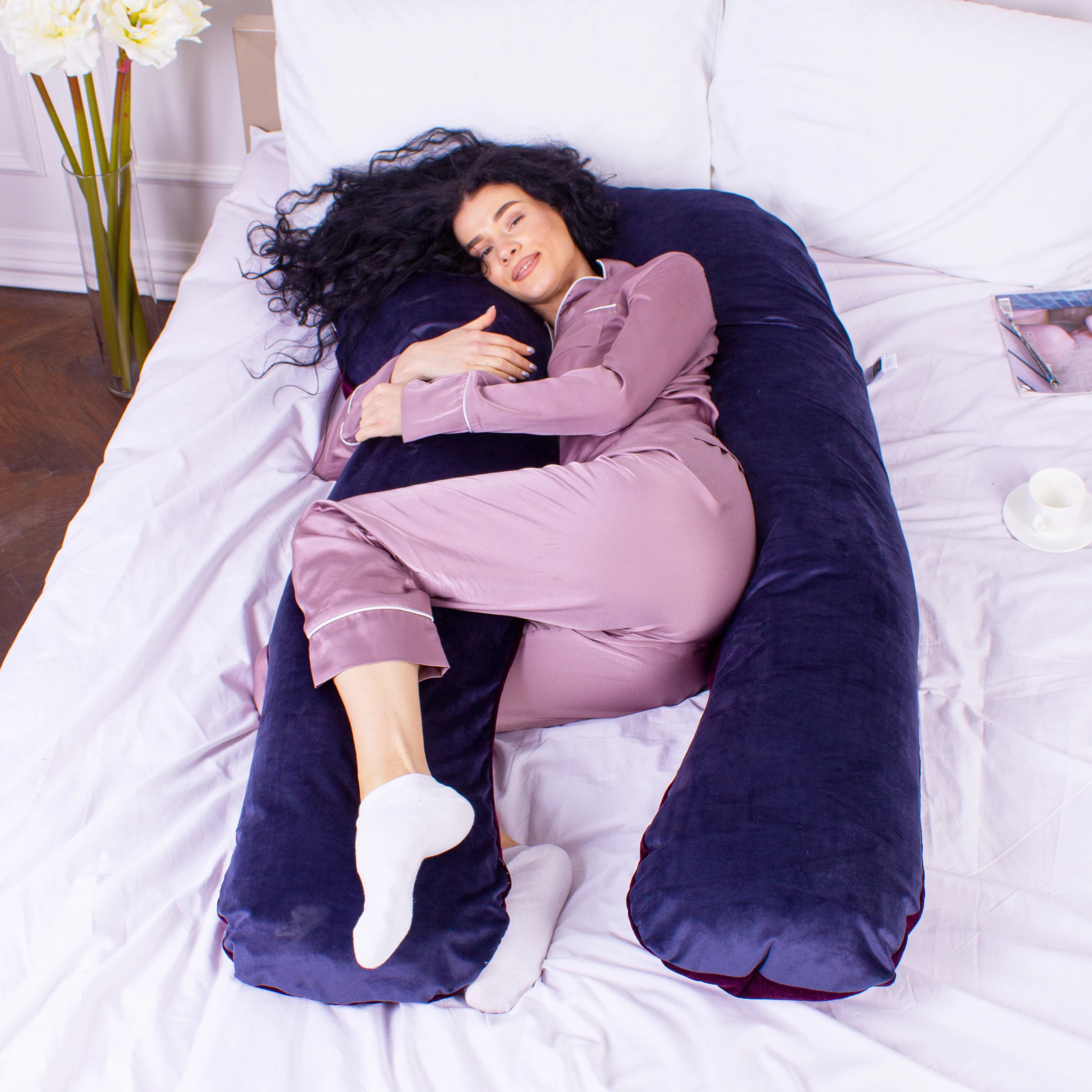Подушка для беременных и отдыха U-образная № 8023 Velvet Line "Primula" EcoSilk велюр