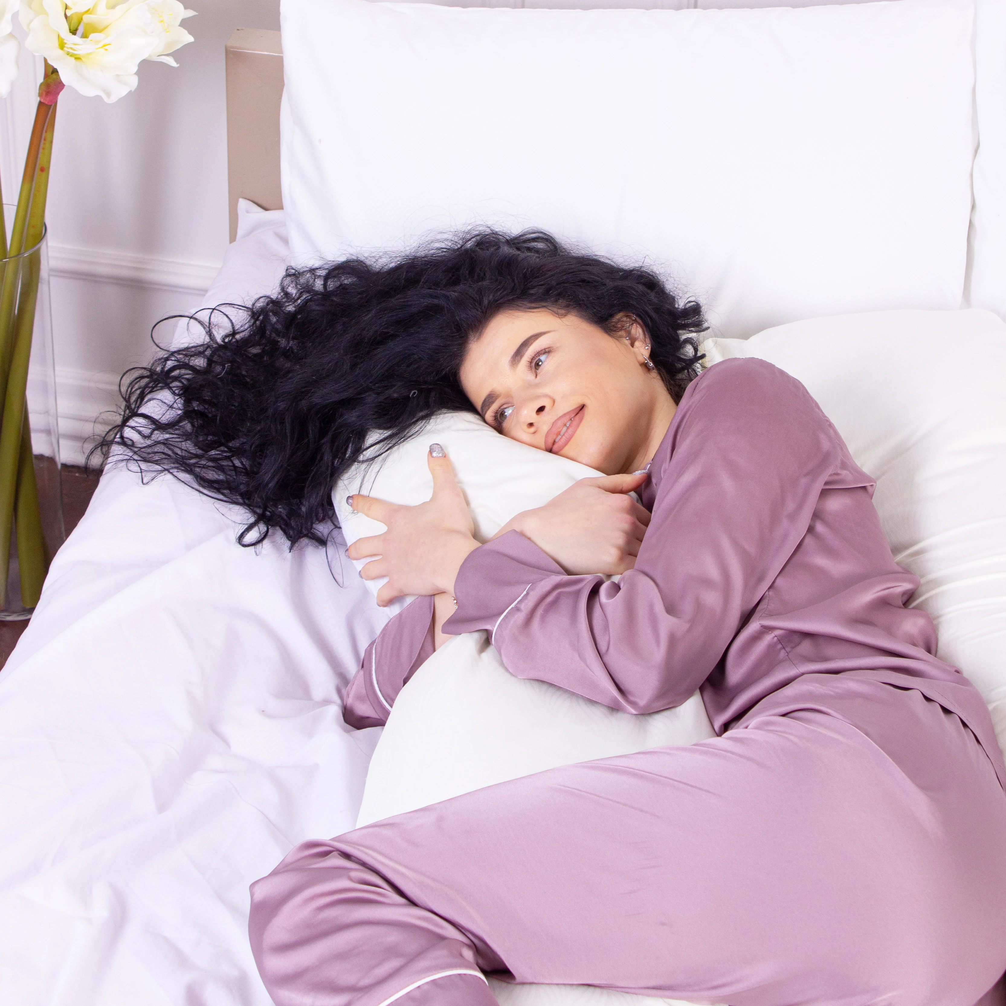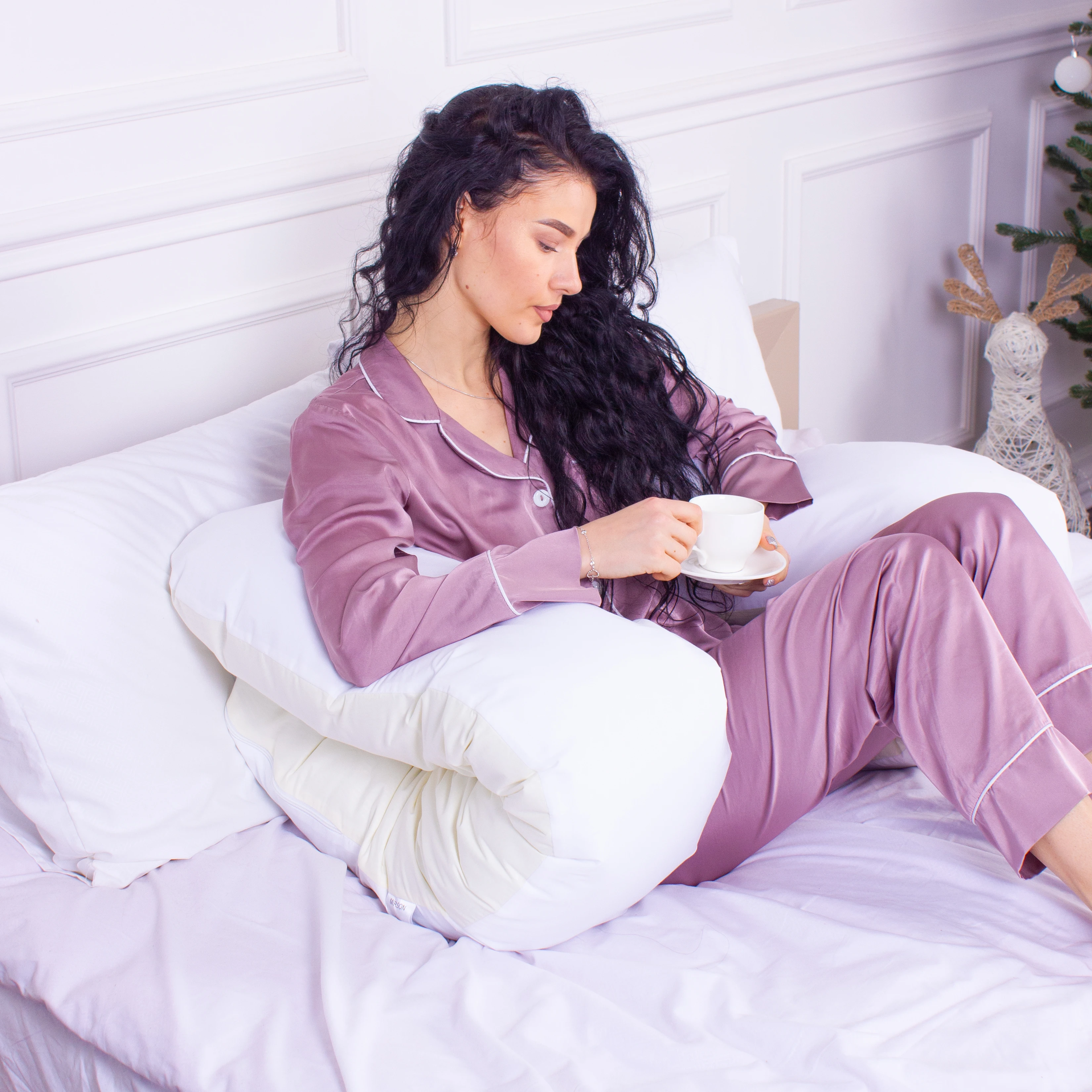 Подушка для беременных и отдыха U-образная № 8033 Eco Line "White-Creamy" EcoSilk микросатин
