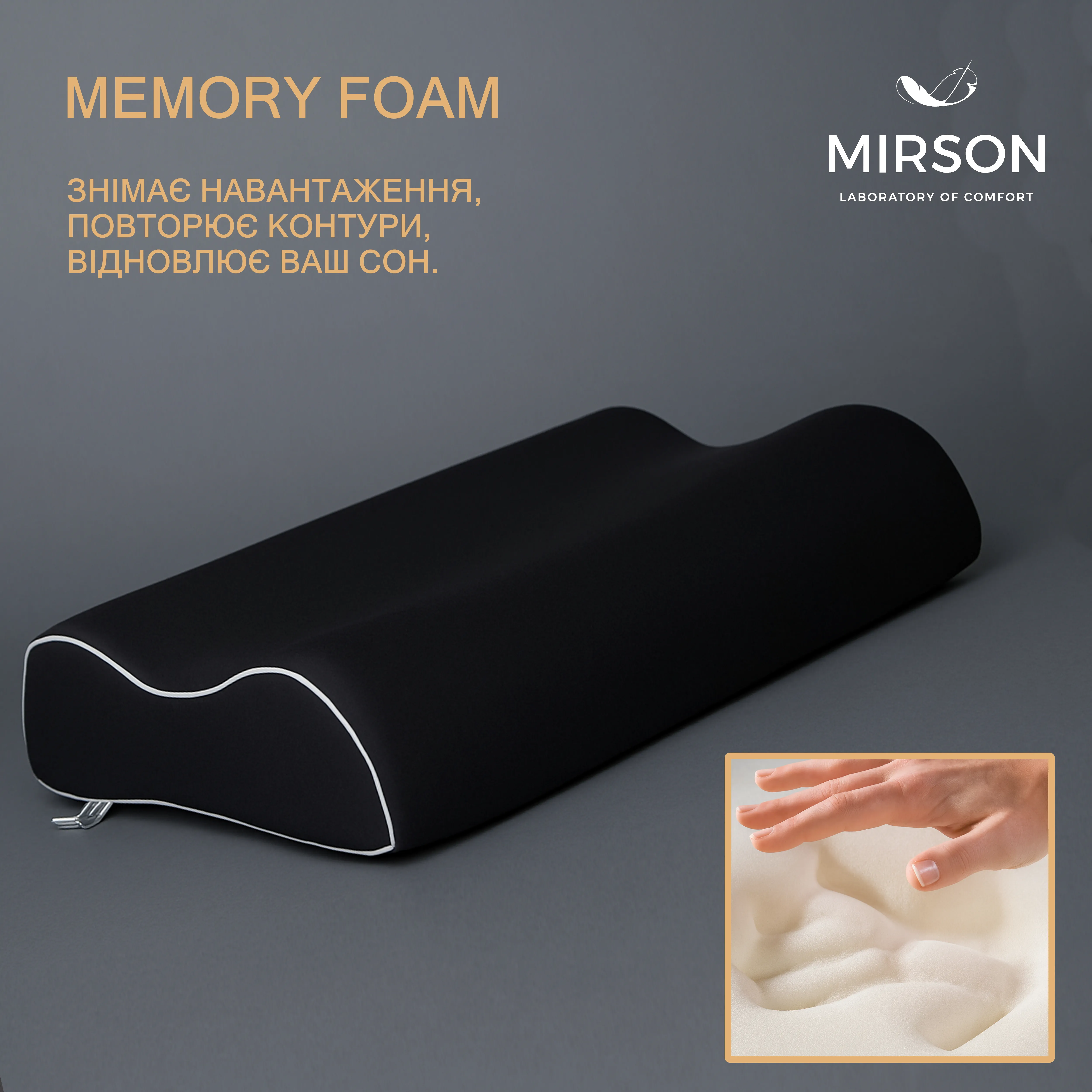 Подушка ортопедическая №6008 Delicate satin Black Pearl 58*40*10,5 см