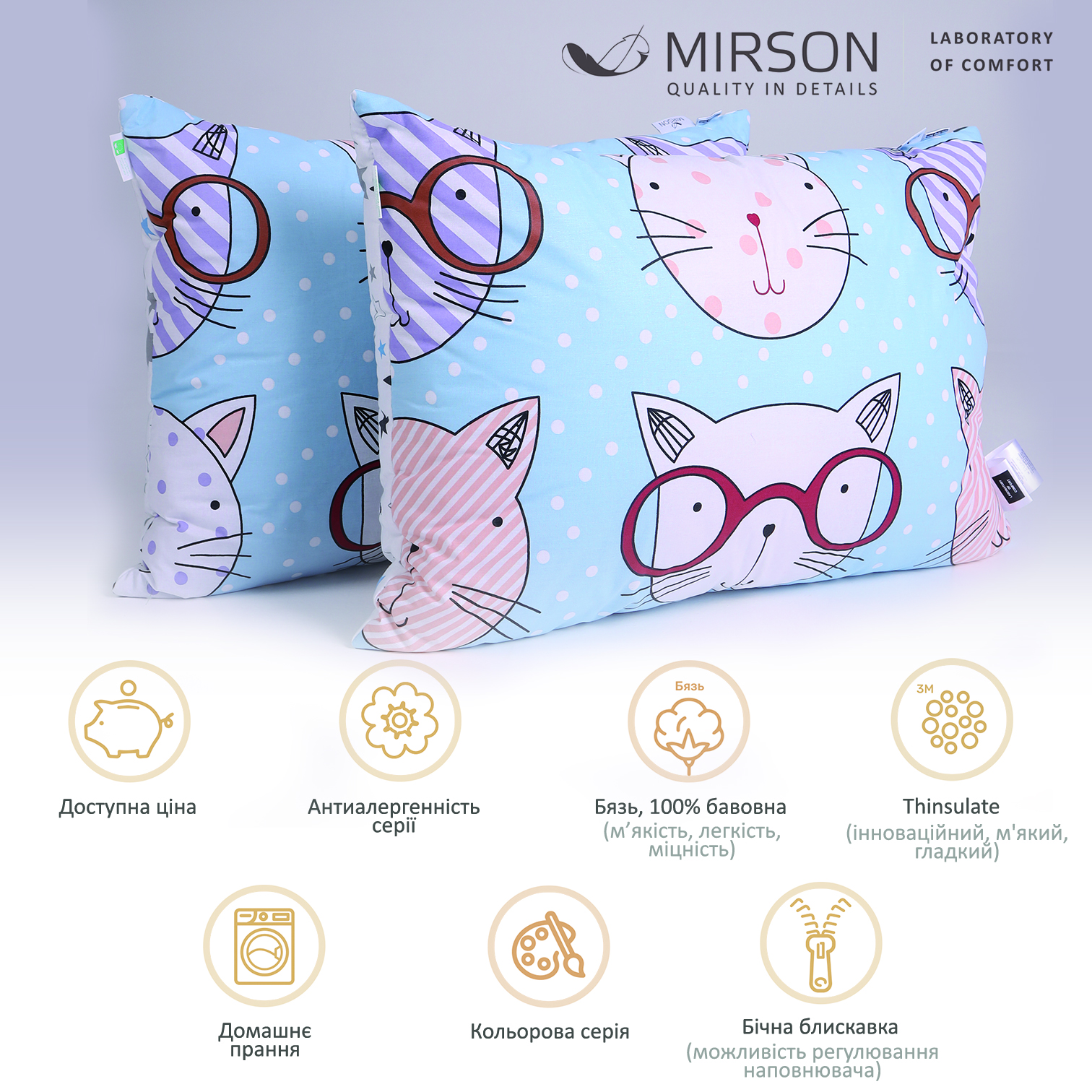 Набор антиаллергенных подушек Сolor Fun Line Whales №4064 3M TM Thinsulate TM бязь (срение)