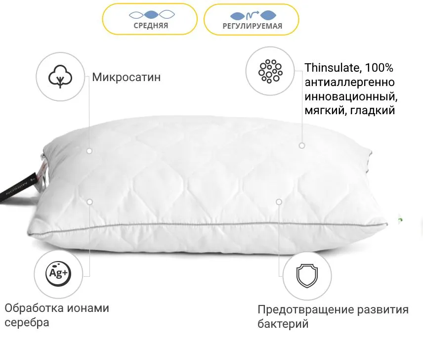 Подушка антиаллергенная Eco Silver №139 3M TM Thinsulate TM микросатин (средняя)