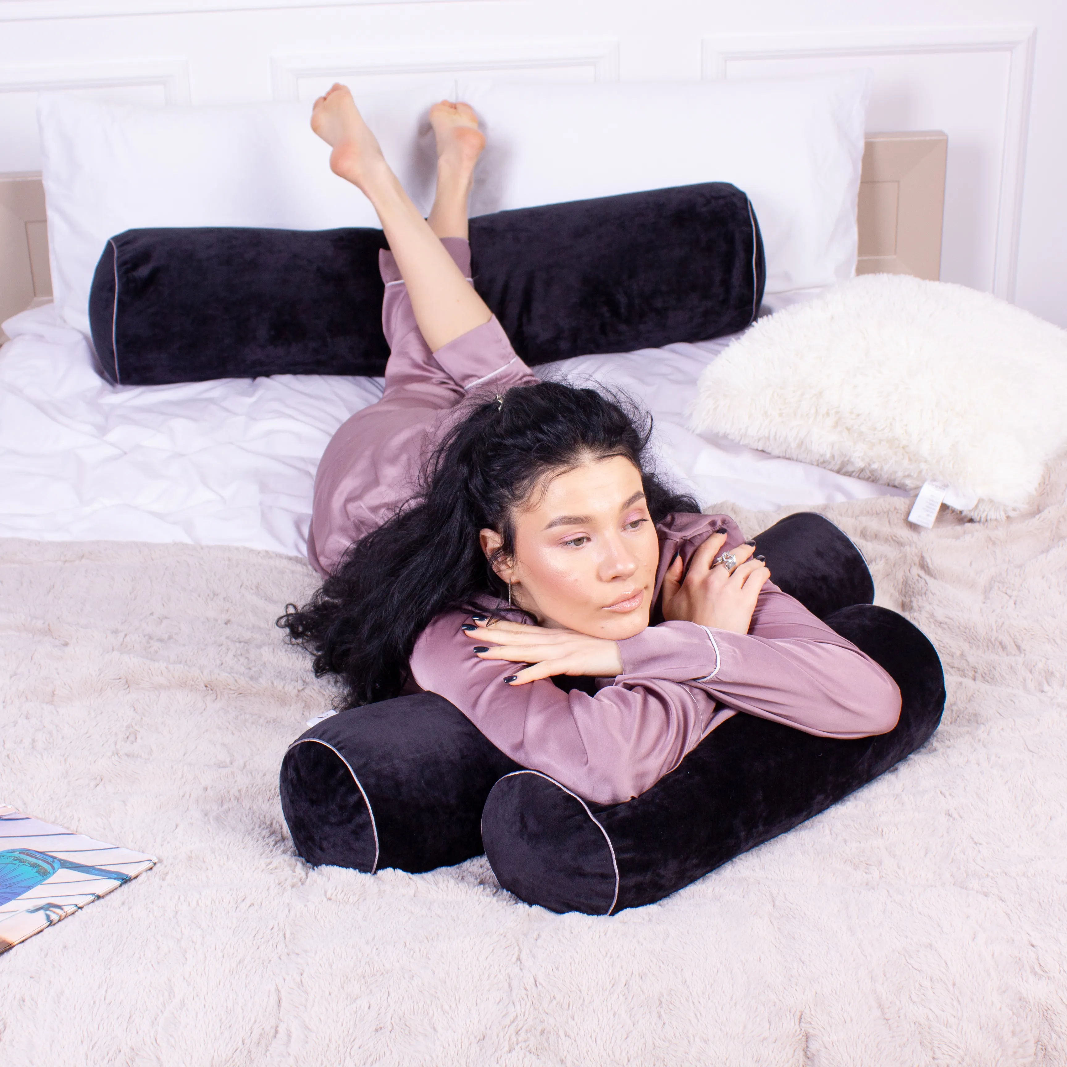 Подушка-валик №8400 Velvet Line 28-0007 Black Tencel