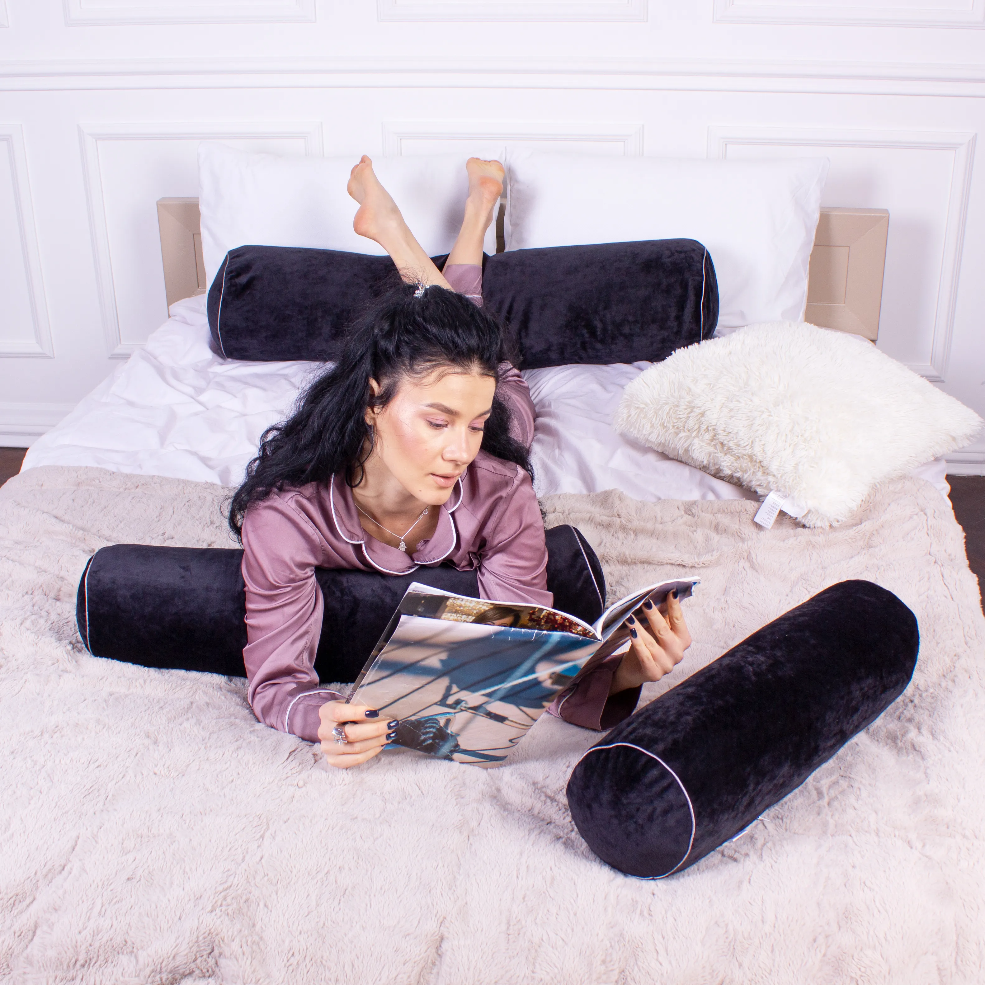 Подушка-валик №8526 Velvet Line 28-0007 Black 50% Memory