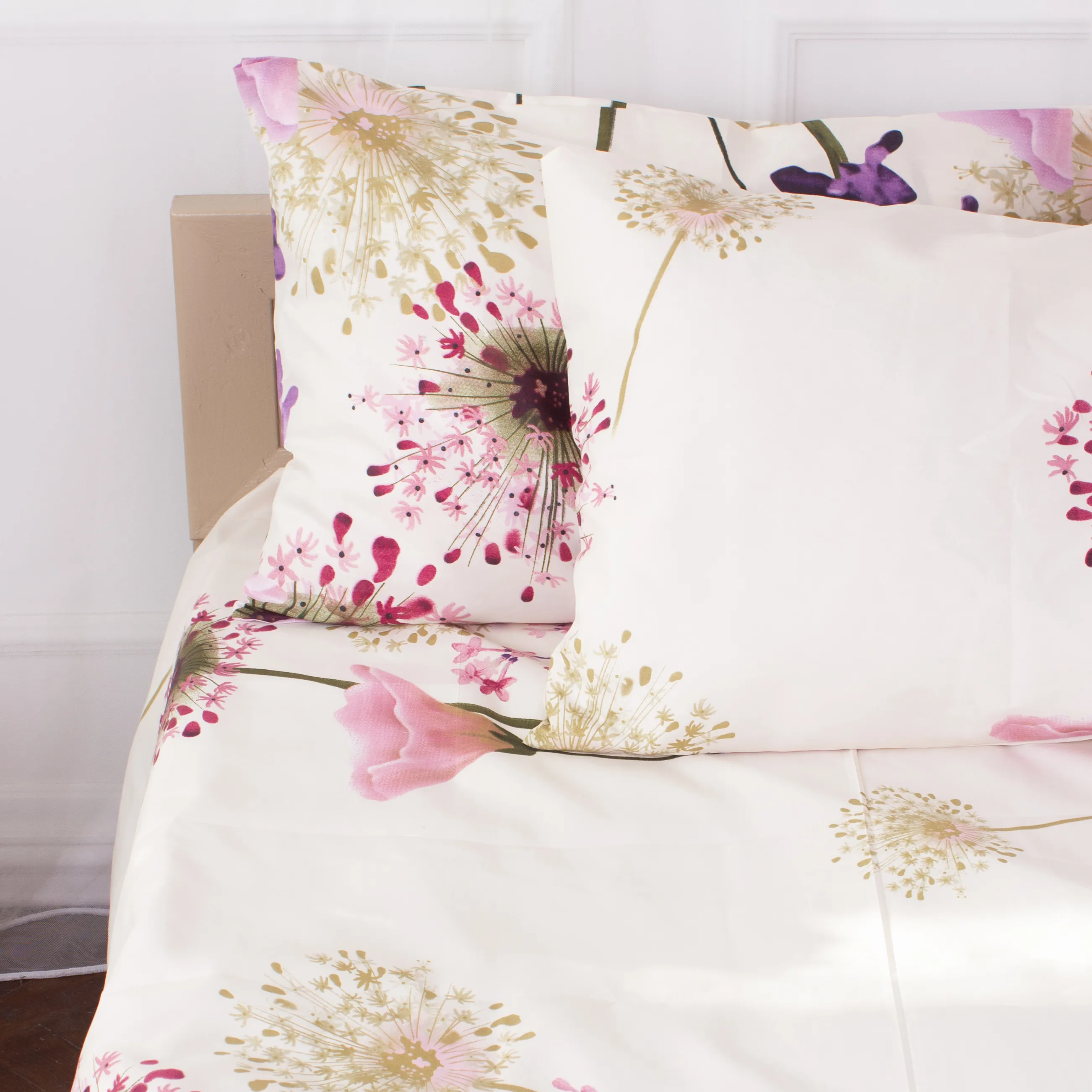 Все последующие стирки рекомендуем проводить при температуре 40°С деликатный режим, сушка, глажка при 150°С разрешена. Стирать соответственно цветовой гамме постельного