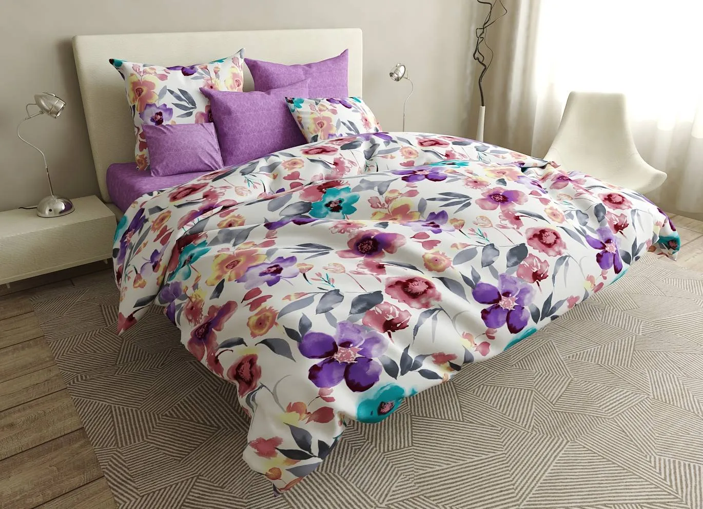 Все последующие стирки рекомендуем проводить при температуре 40°С деликатный режим, сушка, глажка при 150°С разрешена. Стирать соответственно цветовой гамме постельного