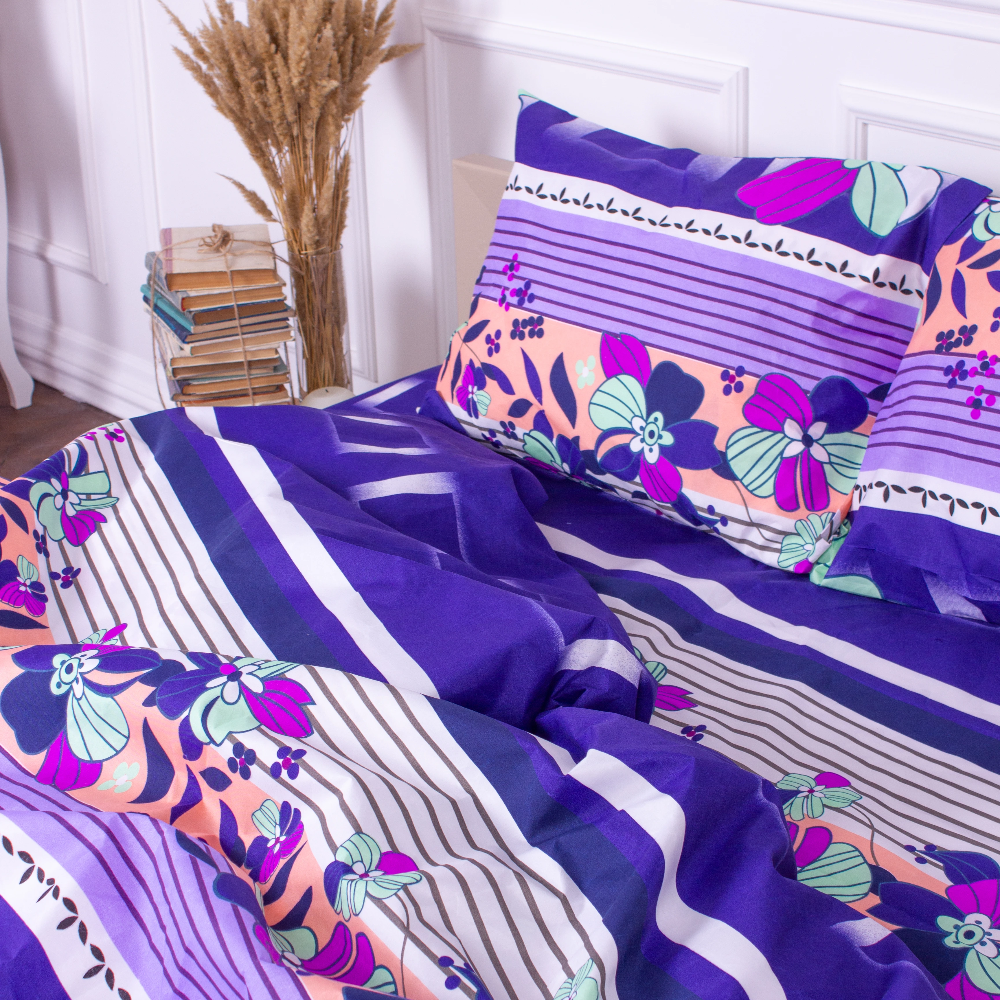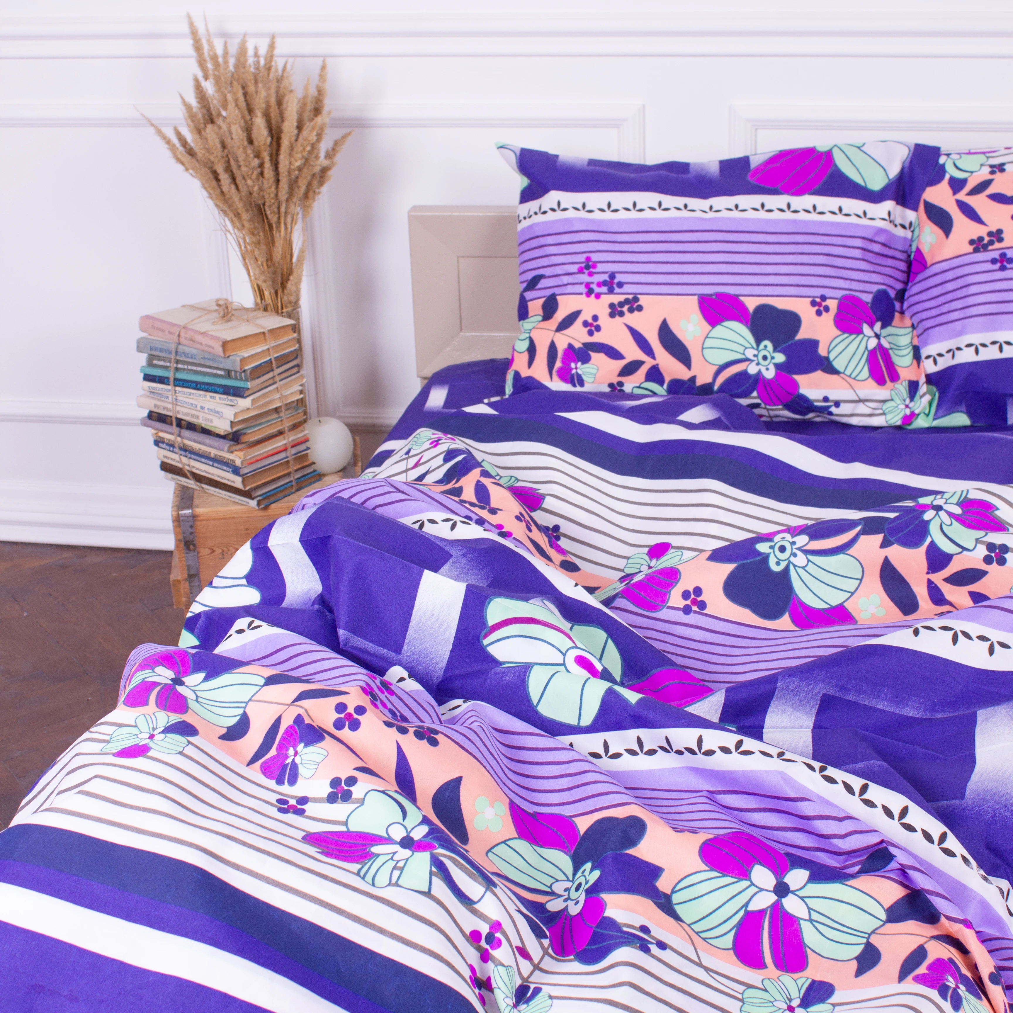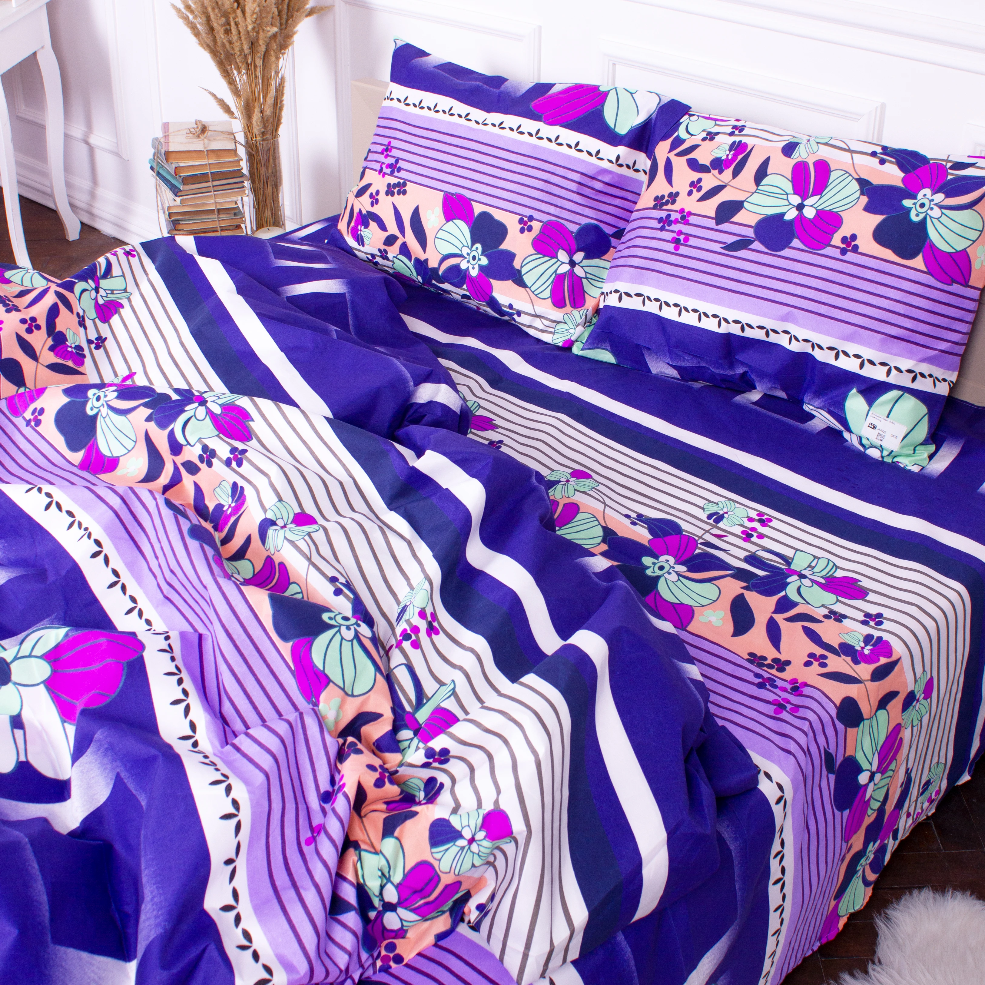 Все последующие стирки рекомендуем проводить при температуре 40°С деликатный режим, сушка, глажка при 150°С разрешена. Стирать соответственно цветовой гамме постельного