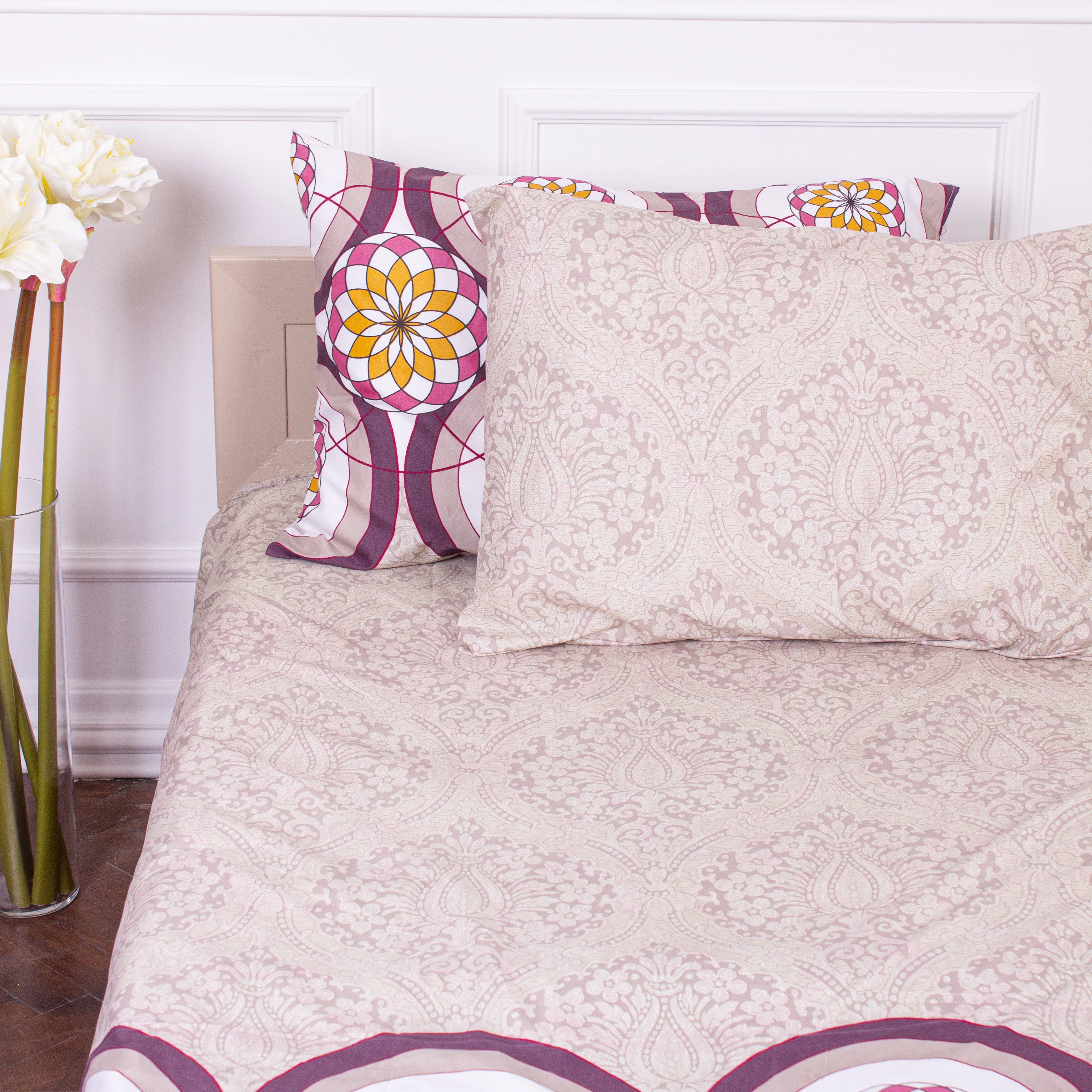 Неповторимость, эксклюзивность и уникальность изделию придает процесс его изготовления. Мы уделяем особое внимание качеству пошива постельного белья. Все изделия проходят до 5 этапов контроля качества. Только ручная работа задействована в изготовлении данных постельных комплектов, которые всегда будут радовать Вас не только своей уникальностью, но и качеством пошива, аккуратностью швов и красотой! Вот этим и ценна ручная работа, в сравнении с серийным производством домашнего текстиля, что создается на машинах. Мы уделяем особое внимание мелочам, так как на них и строится безупречность качества.