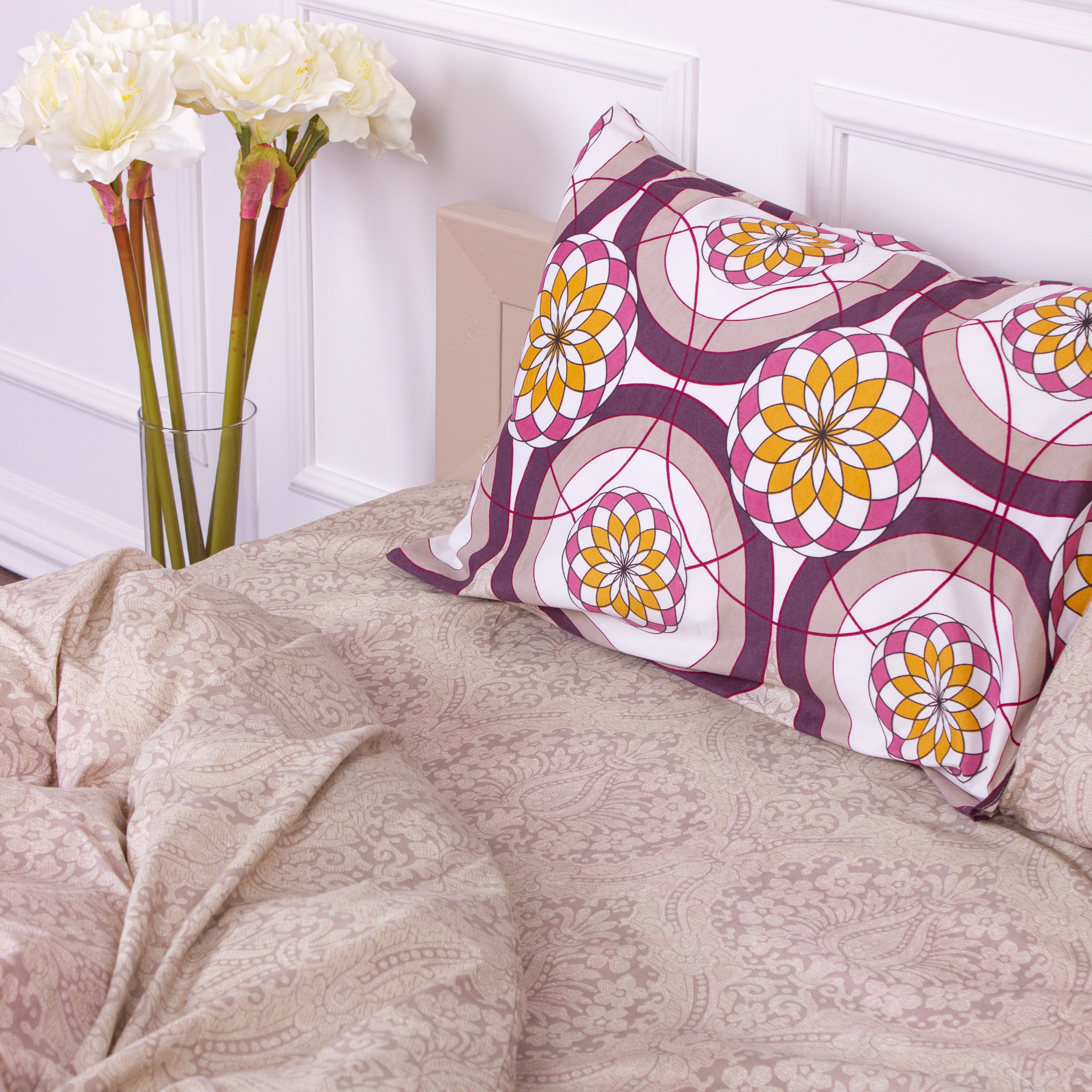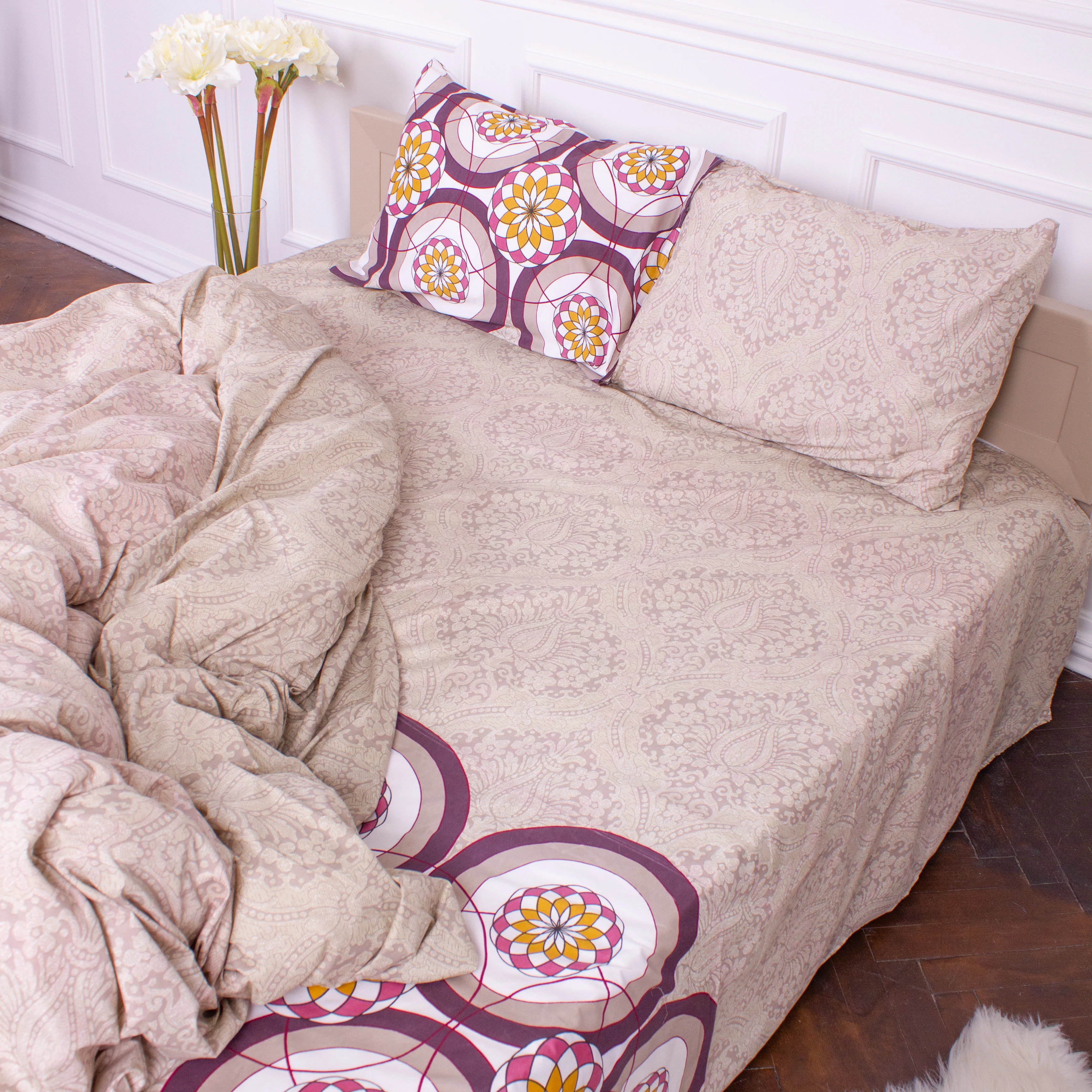 Перед первым использованием комплекта обязательна предварительная стирка при температуре 30-35°С. Постельное белье рекомендуется стирать индивидуально, отдельно от других вещей. Стирать и гладить КПБ обязательно вывернув наизнанку.
