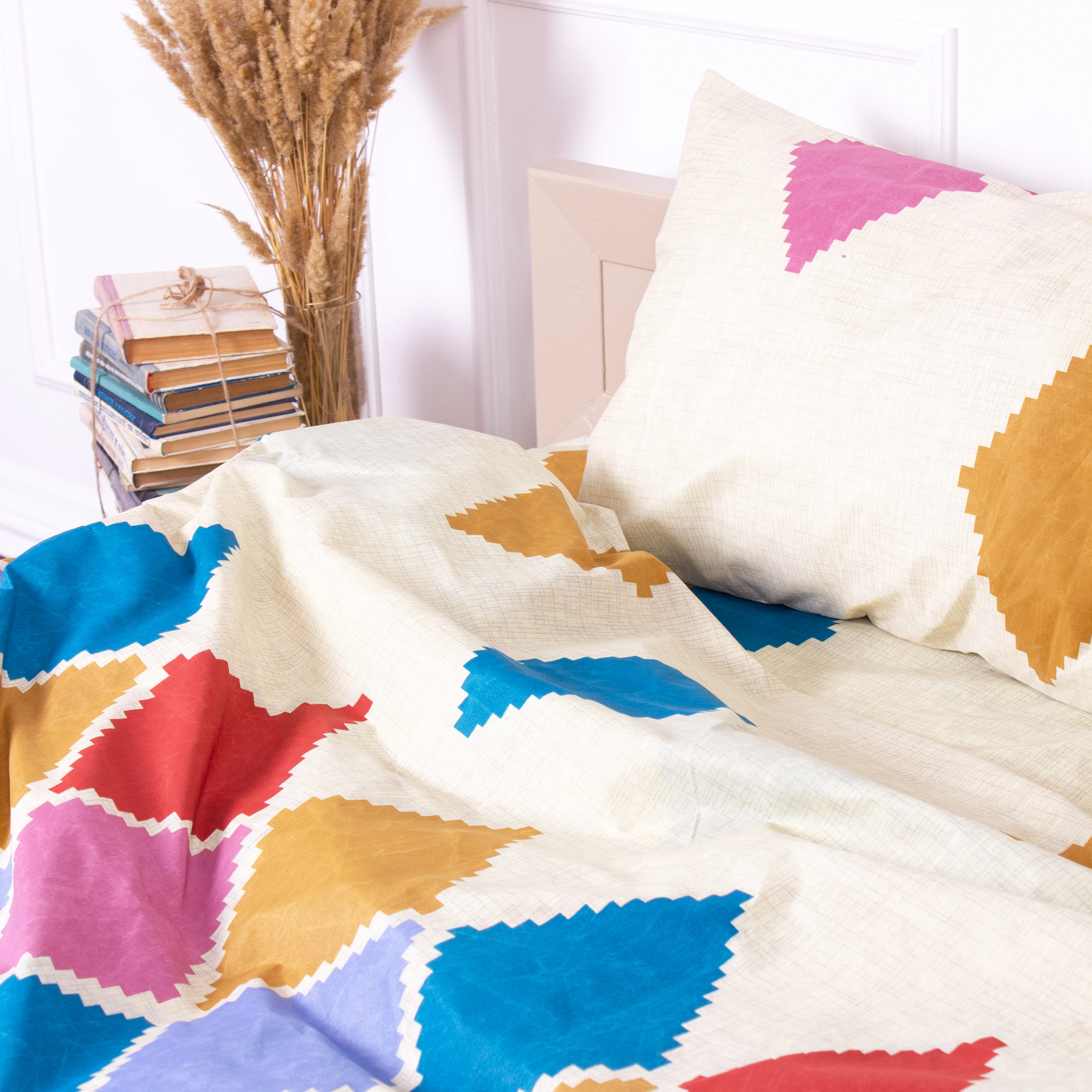 Все последующие стирки рекомендуем проводить при температуре 40°С деликатный режим, сушка, глажка при 150°С разрешена. Стирать соответственно цветовой гамме постельного