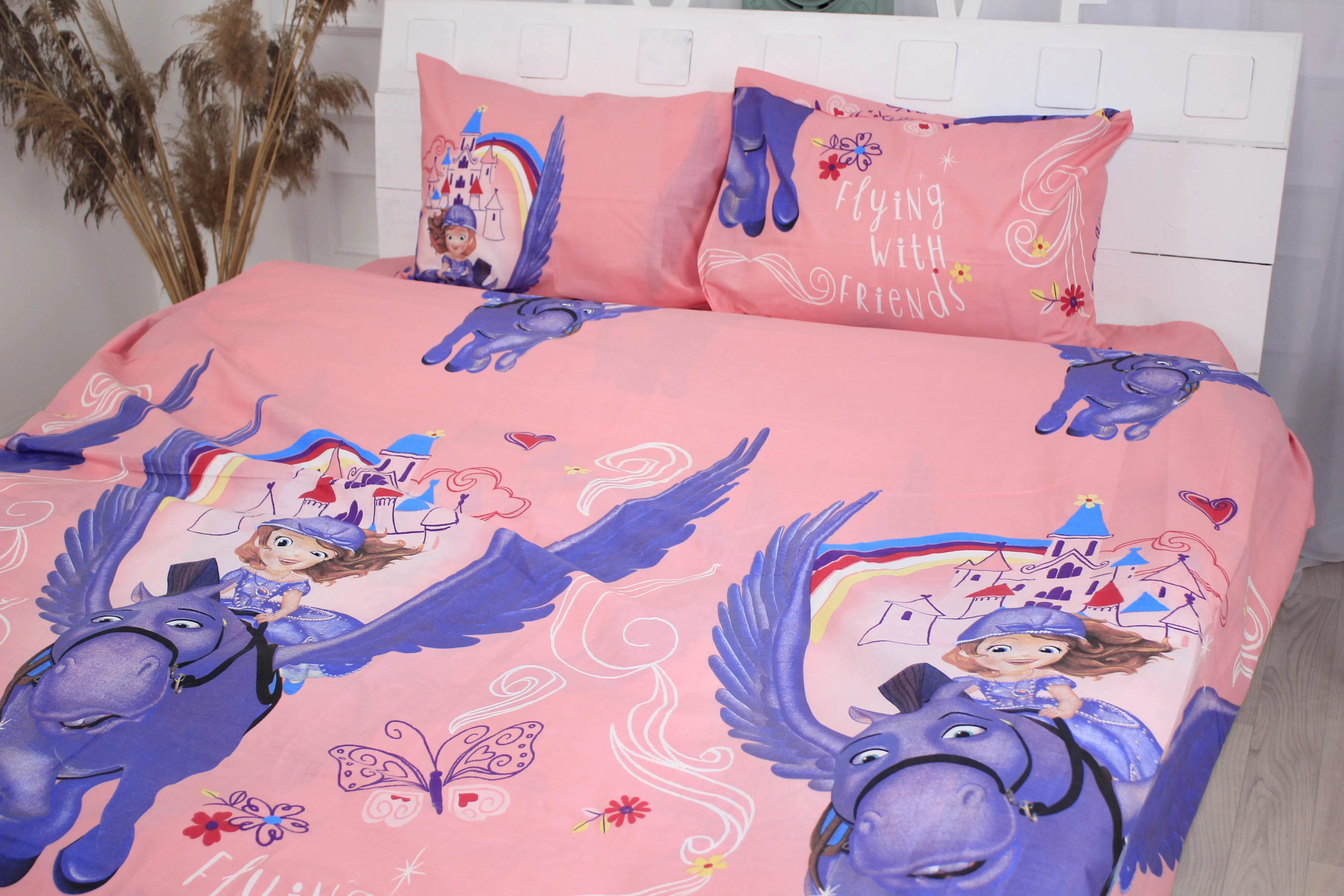 Все последующие стирки рекомендуем проводить при температуре 40°С деликатный режим, сушка, глажка при 150°С разрешена. Стирать соответственно цветовой гамме постельного