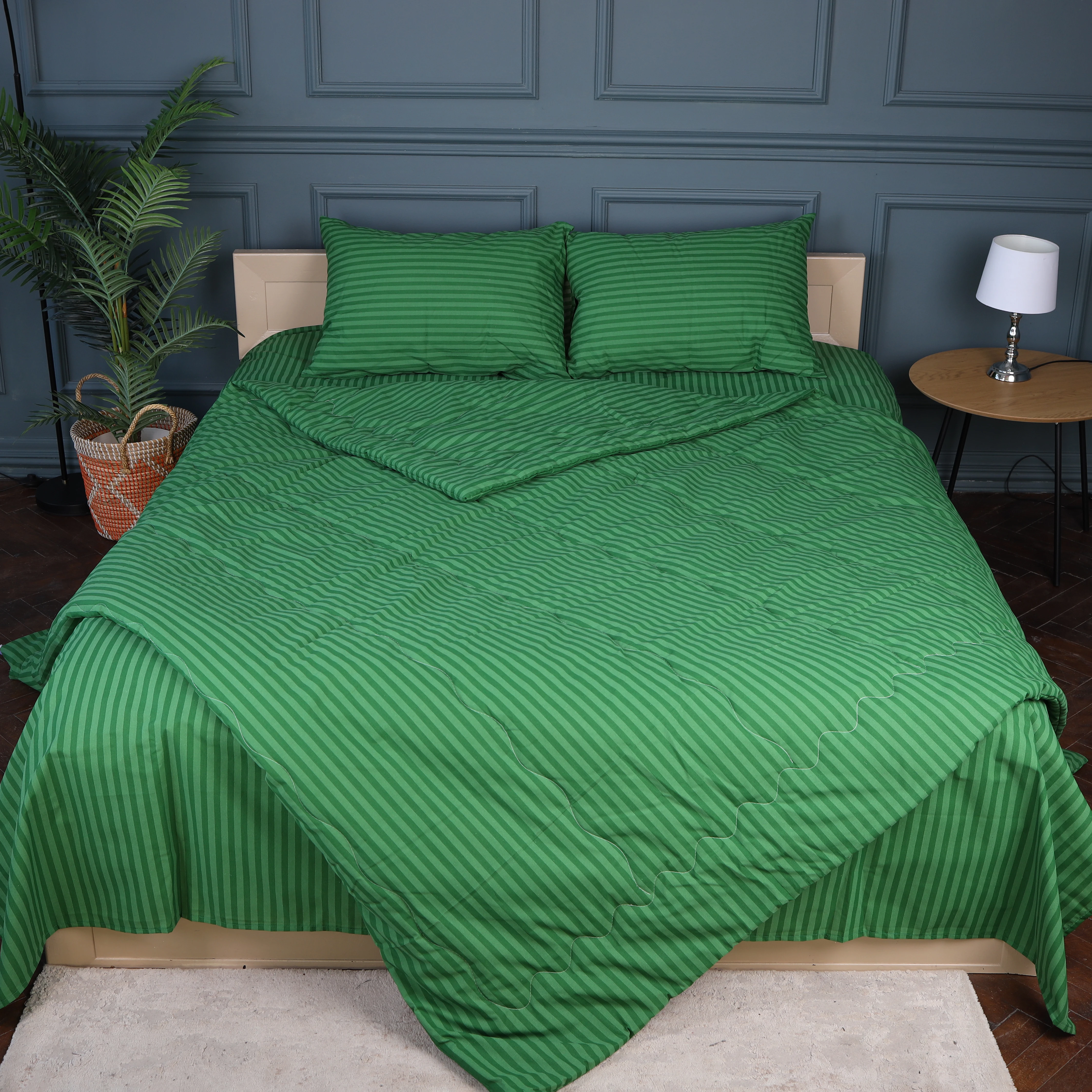 Летний постельный комплект №2918 Сolor Fun Line 17-0612 Stripe Emerald "Modal" (одеяло + 2 наволочки)