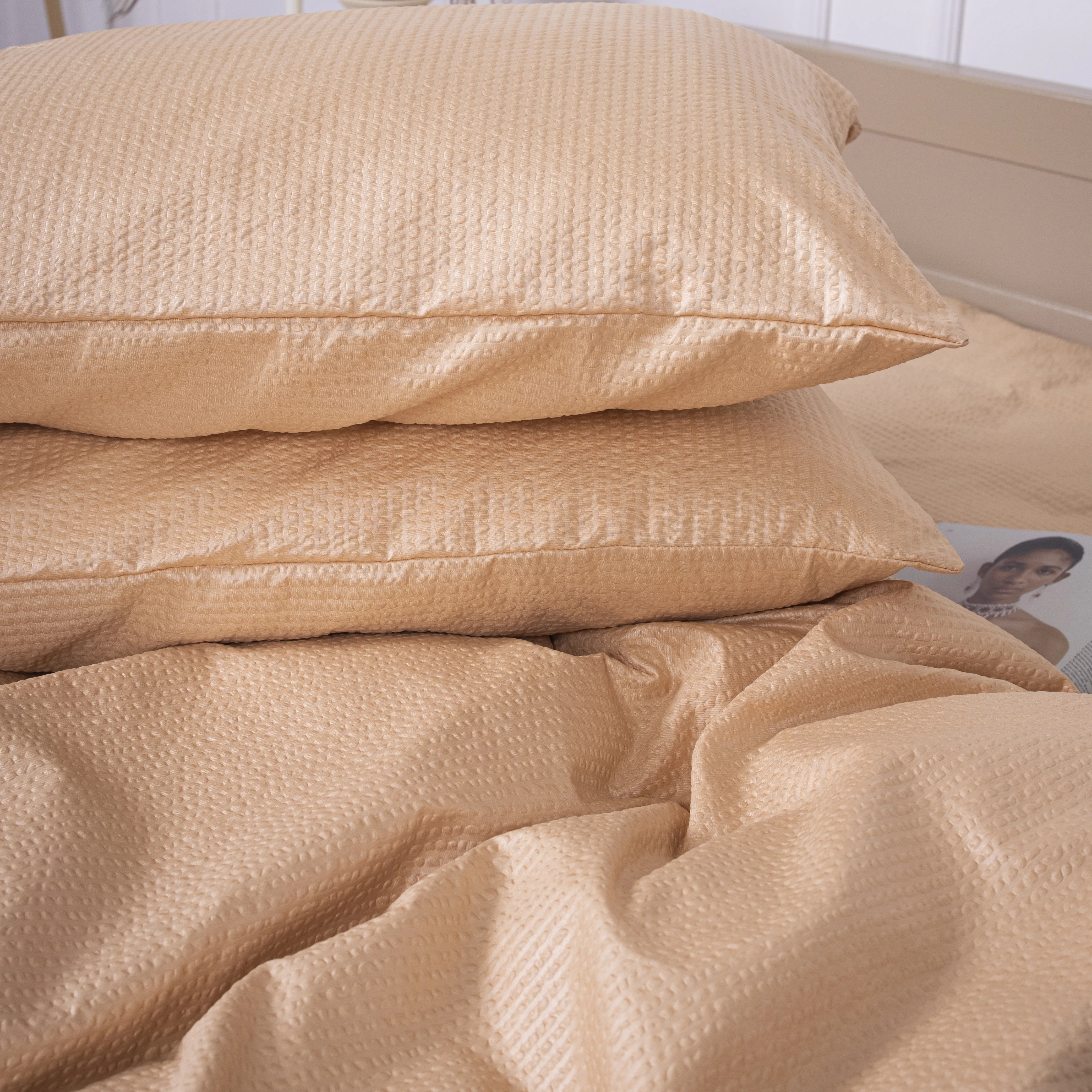 Наволочка из жатки - придает комфорт и уют в спальне. Изготовленна из качественного и приятного на ощупь материала, жатка придает непревзойденный комфорт во время сна. Ее гладкая поверхность создает приятное чувство, позволяя коже свободно дышать и релаксировать. Жатка также отличается высокой прочностью и долговечностью, обеспечивая длительный срок службы. Благодаря своим прекрасным свойствам и эстетическому виду, станет важной составляющей элементом спального интерьера, придавая ему чистоту, элегантность и утонченность.