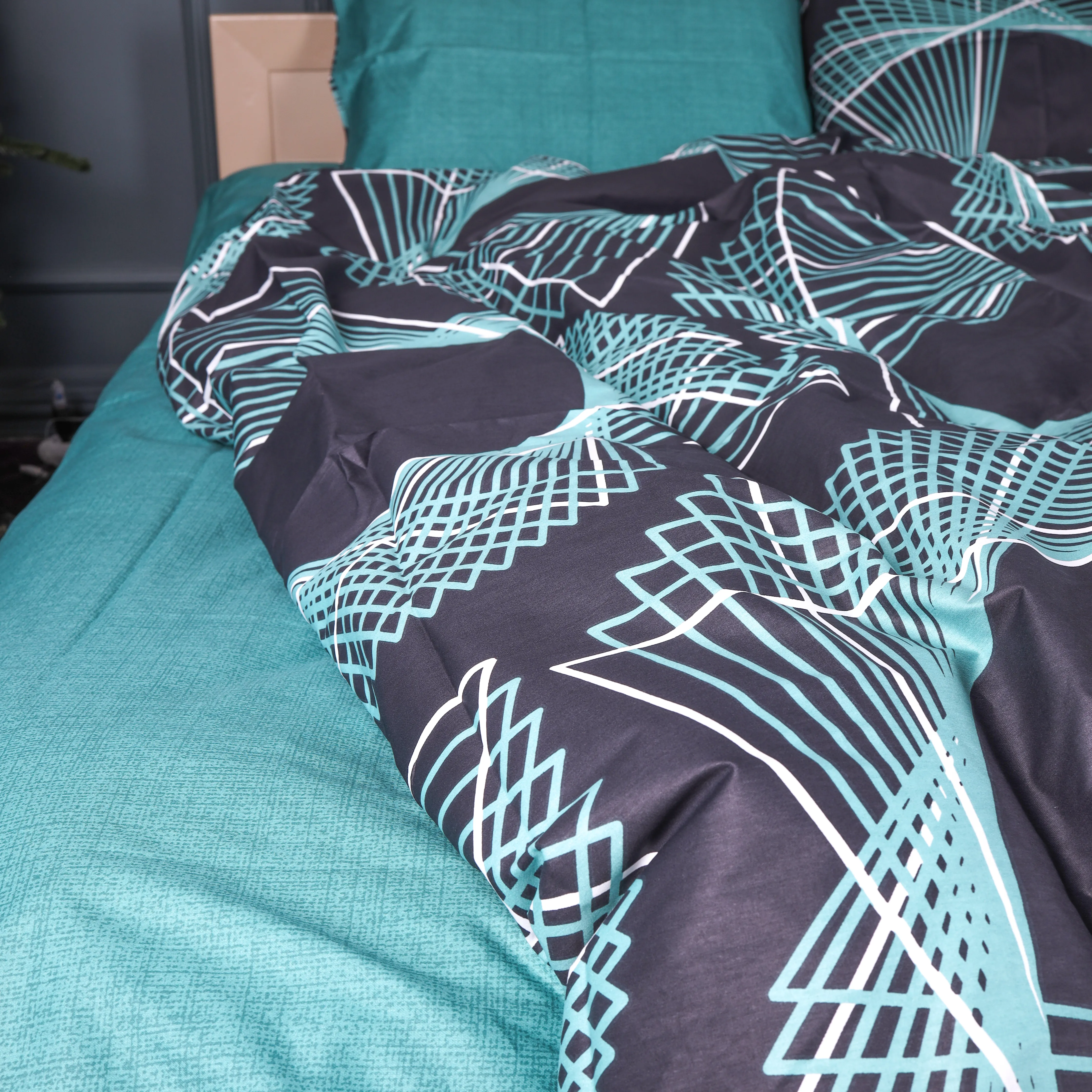 Пододеяльник Сатин 22-1442 Neon Emerald Lines