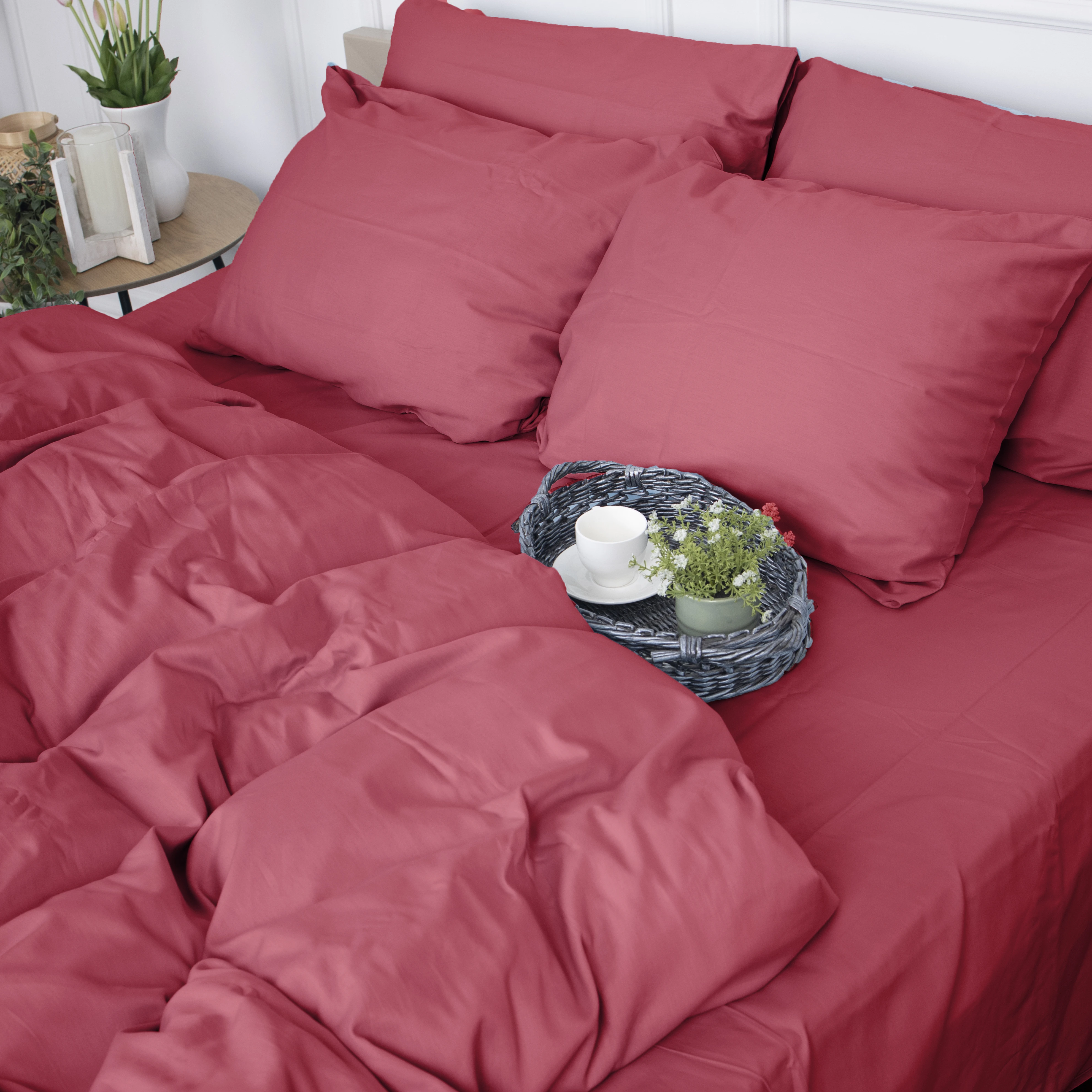 Простынь на резинке Сатин "0847 Tomato" высота 25 см (детские 10 см)