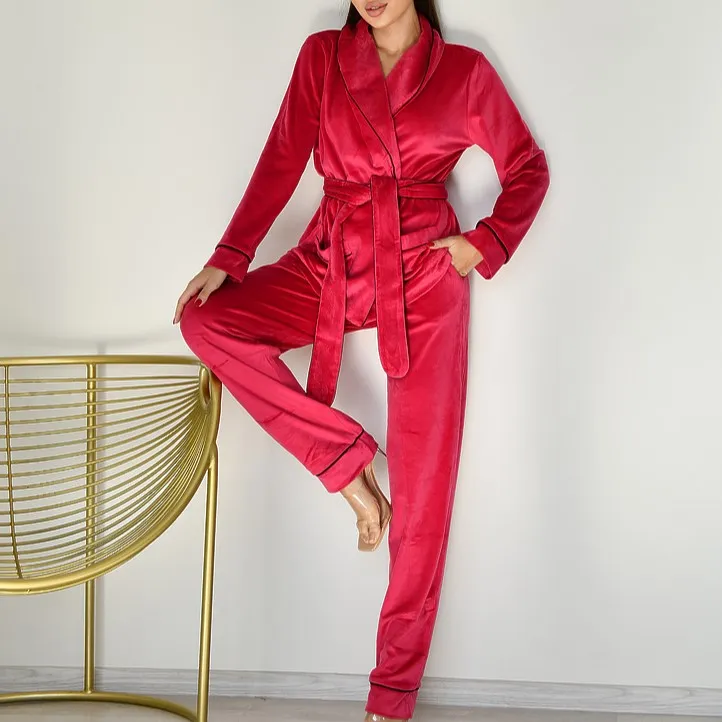 Піжама жіноча Велюрова "Velor crimson" на запах