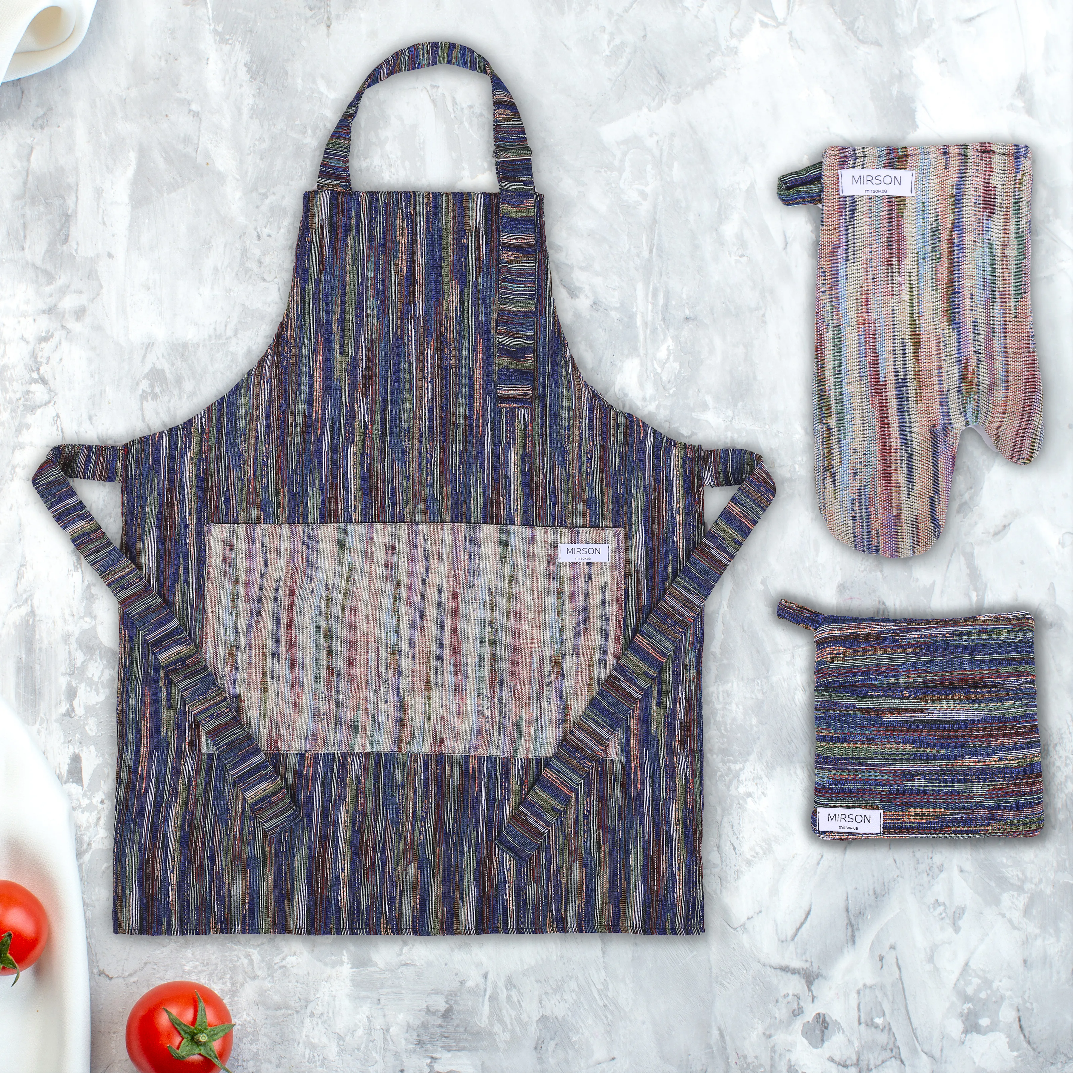 Набір №9000 Mint (прихватки 1 шт., рукавиці 1 шт., фартух 1 шт.) гобелен/вафля