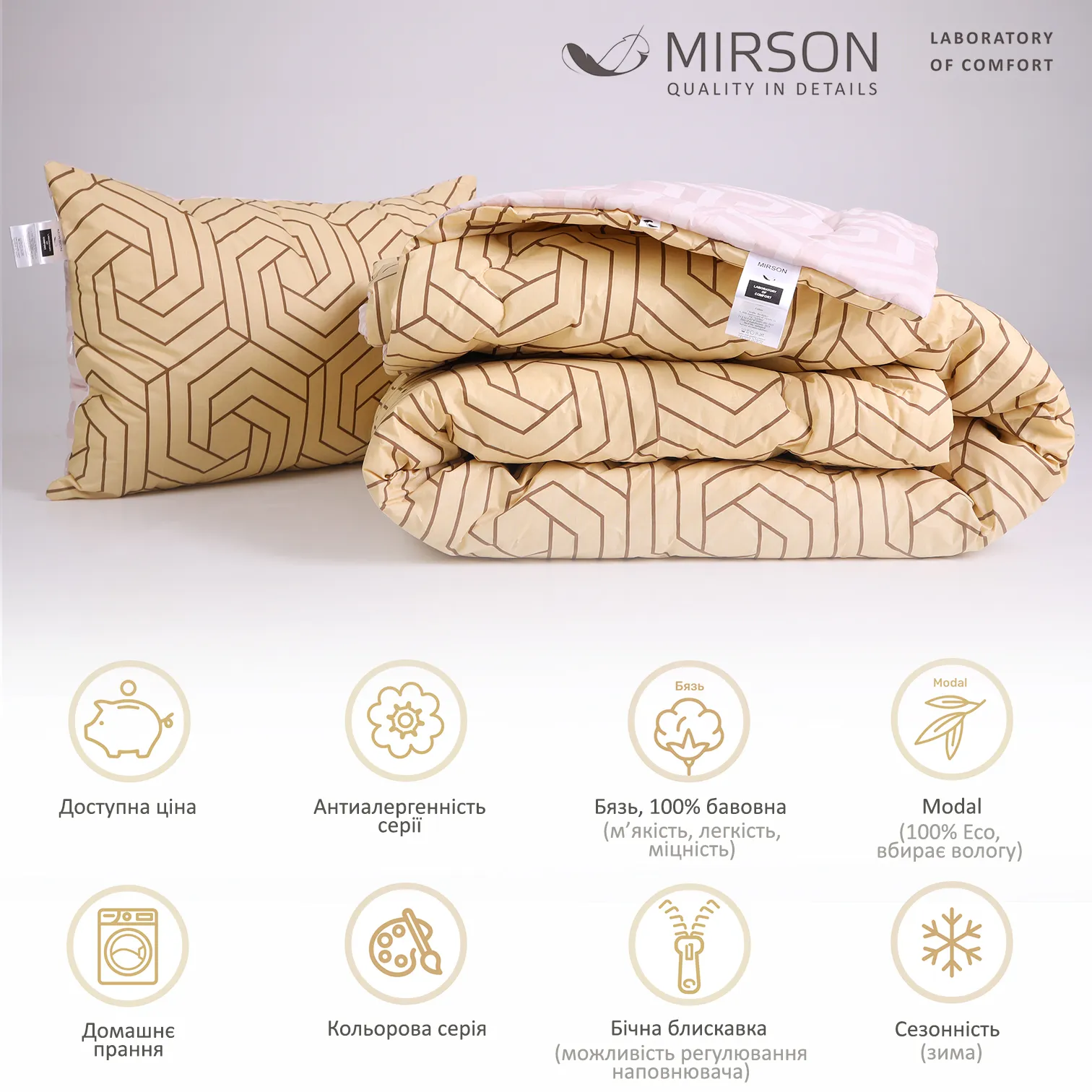 Набір антиалергенний Tencel Зима №3070 Сolor Fun Line (чохол бязь 100%) Geometry (ковдра + середня подушка)