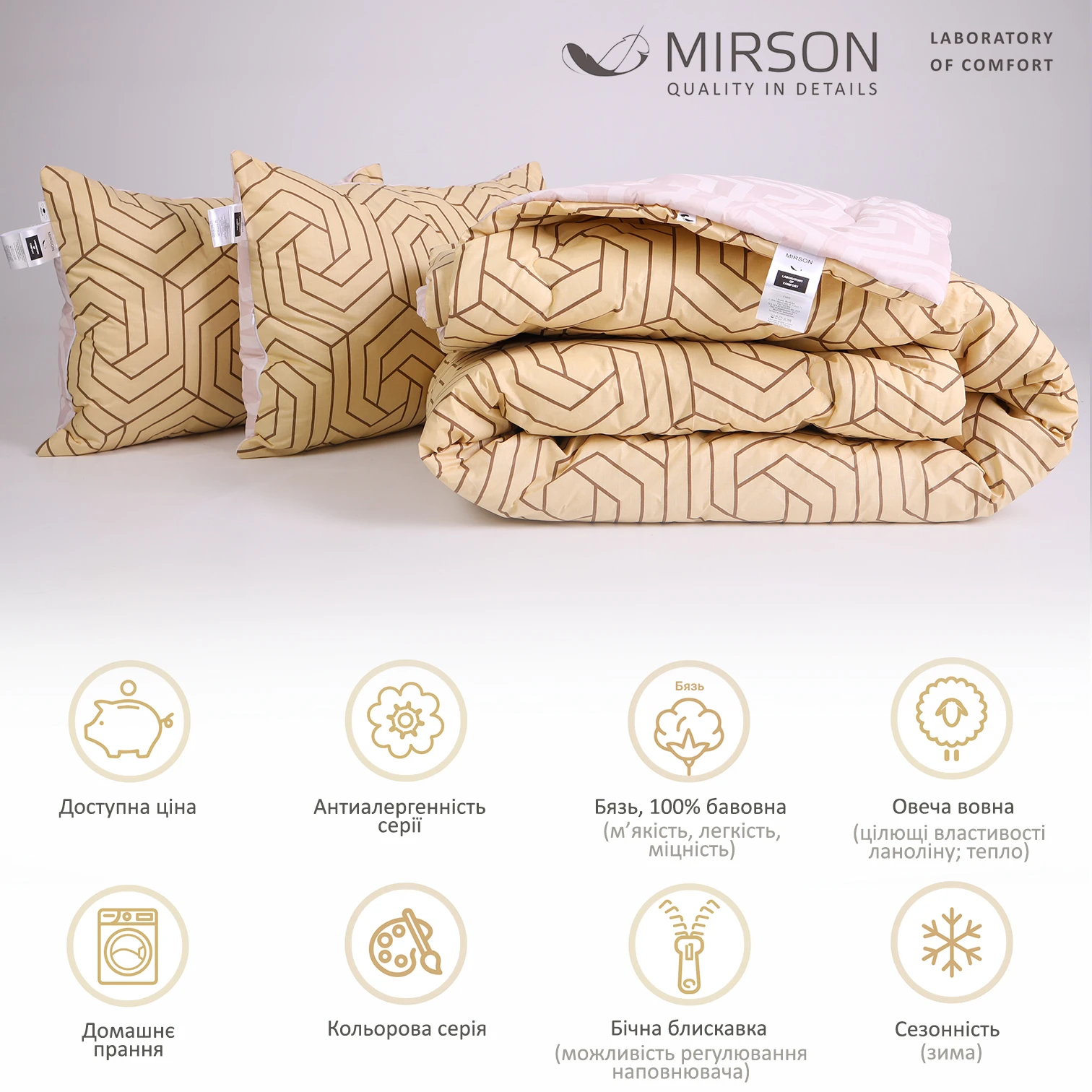 Набір вовняний Зима №3053 Сolor Fun Line (чохол бязь 100%) Geometry (ковдра + 2 подушки середні)