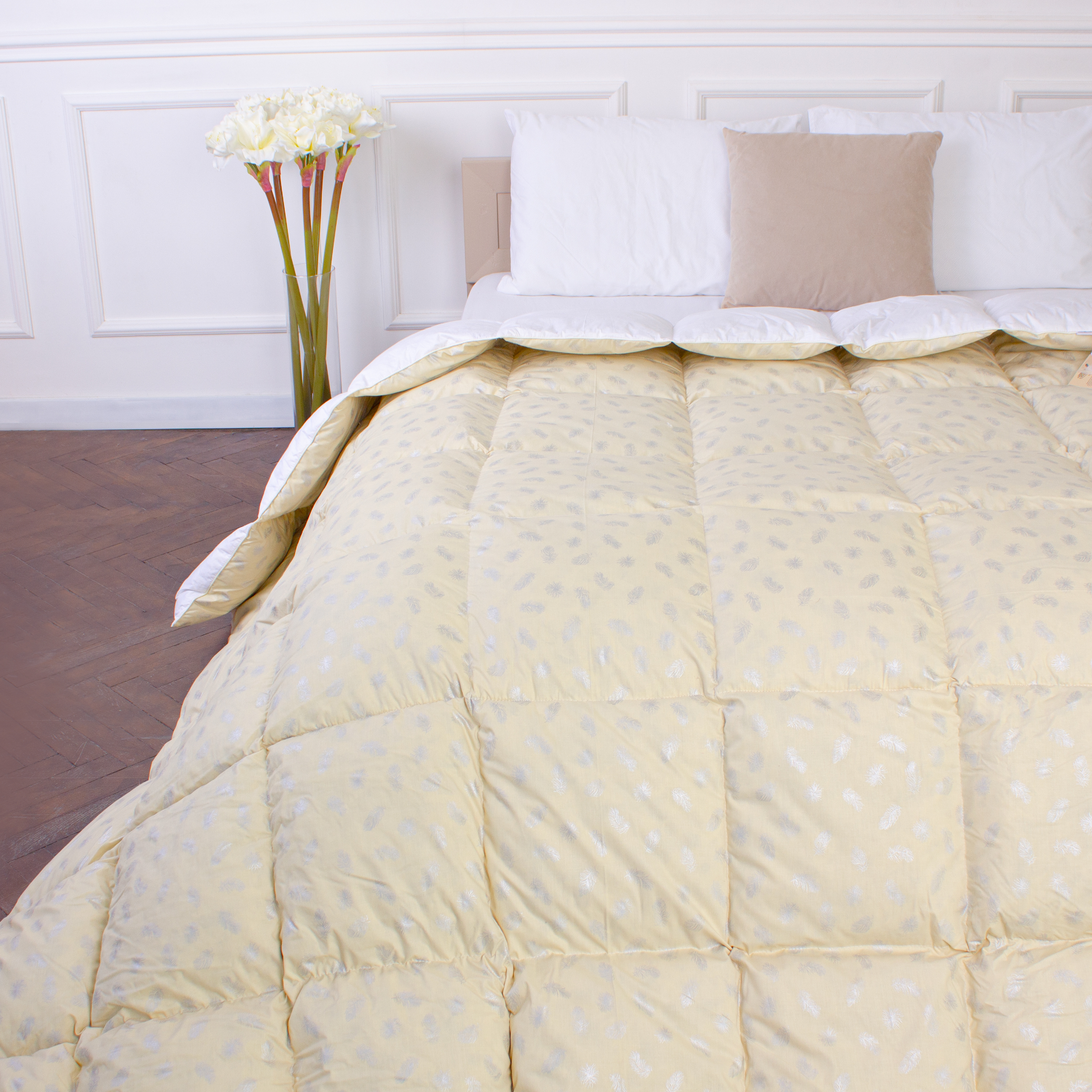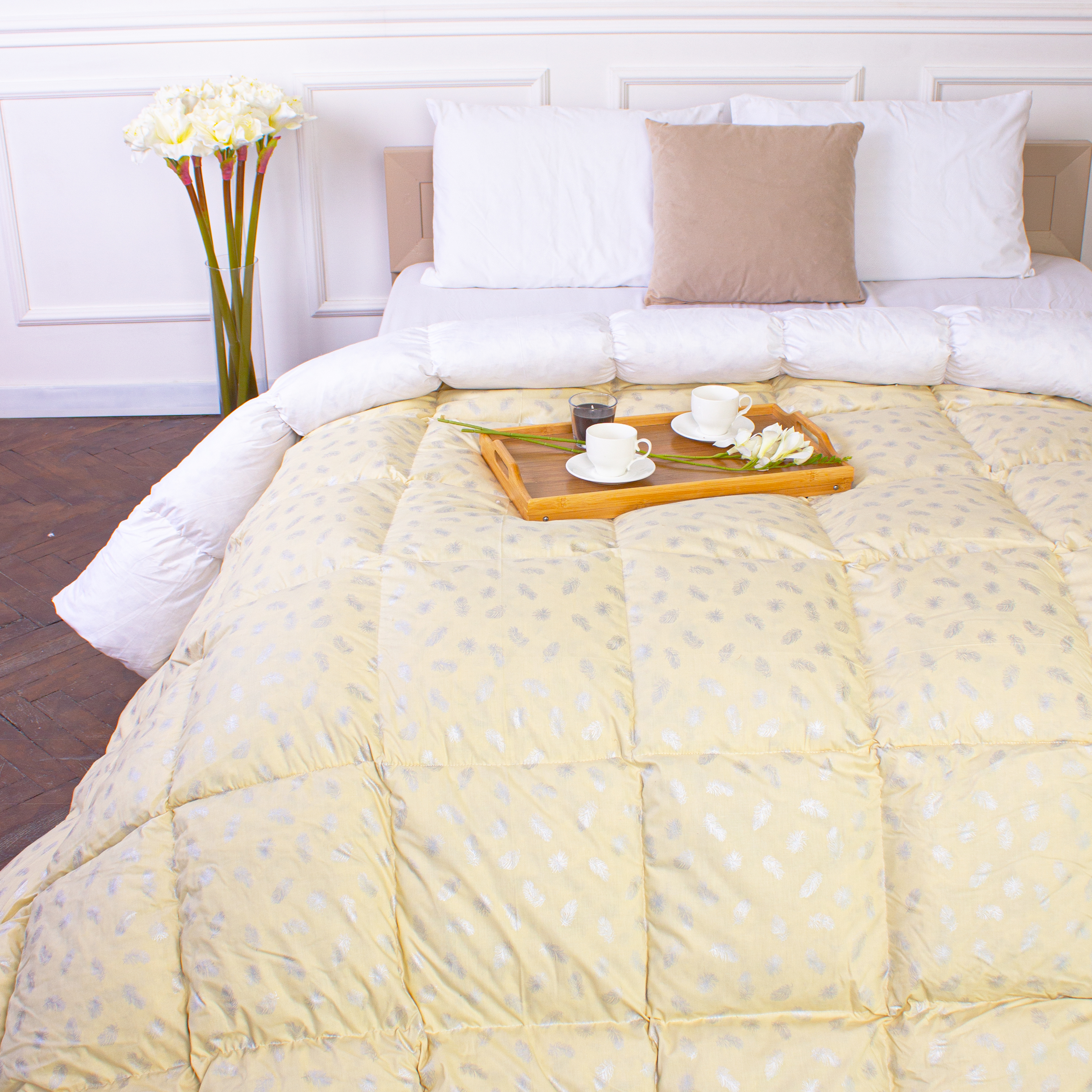 Ковдра пухова KARMEN №1836 "Bio-Beige" 90% сірий Bio пух тик (демі)
