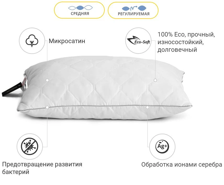 Подушка антиалергенна Eco Silver №464 Eco-Soft мікросатин (середня)