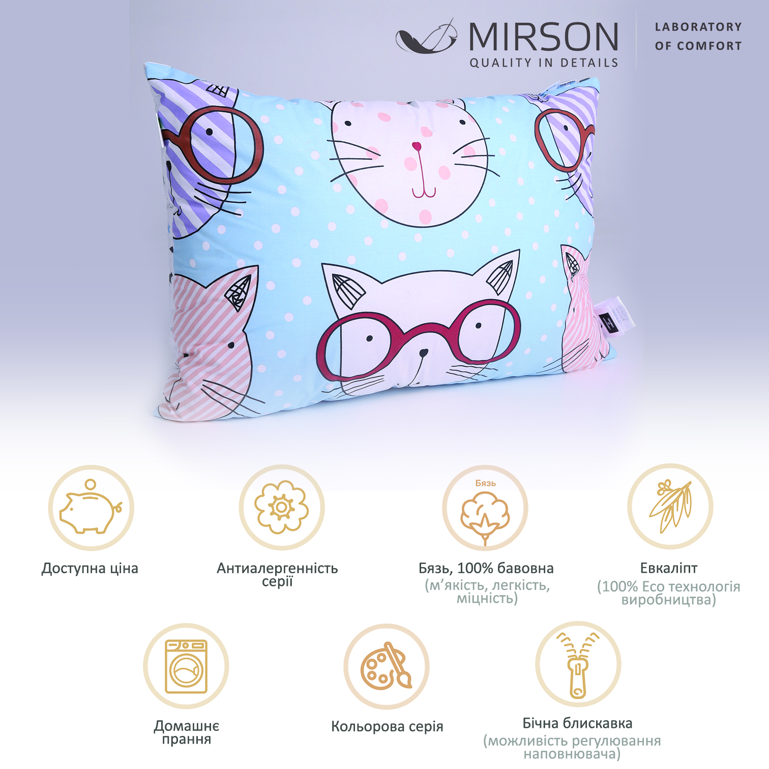 Подушка антиалергенна з Евкаліптом №3091 Сolor Fun Line (чохол бязь 100%) Whales середня