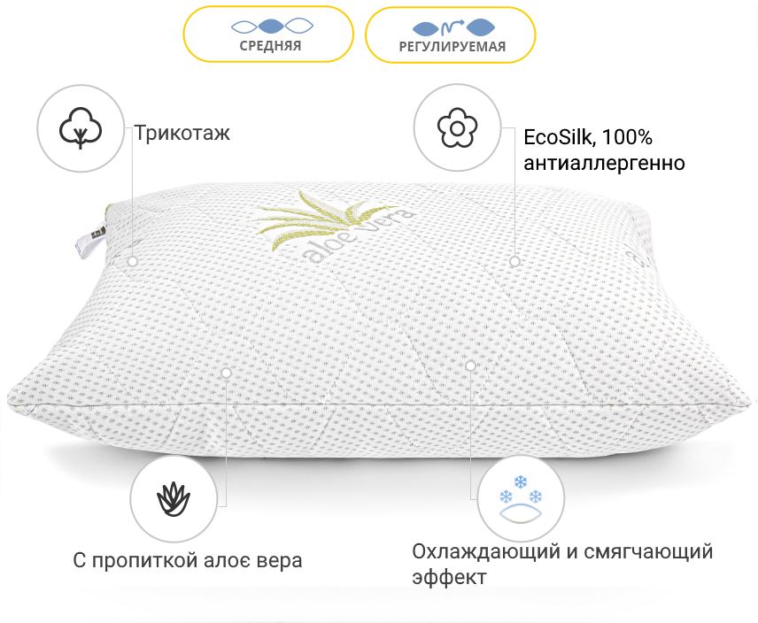 Середні подушки підходять тим, хто полюбляє спати на боці. Завдяки своїй висоті така подушка повністю заповнює простір між головою та матрацом, що дозволяє шиї розслабитись та підтримує хребет у прямому та природньому положенні. Підходить для 85% людей.