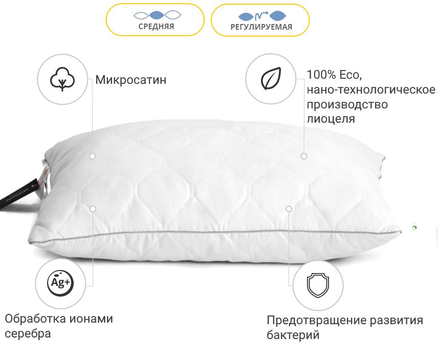 Подушка антиалергенна Eco Silver №0388 Tencel мікросатин (середня)