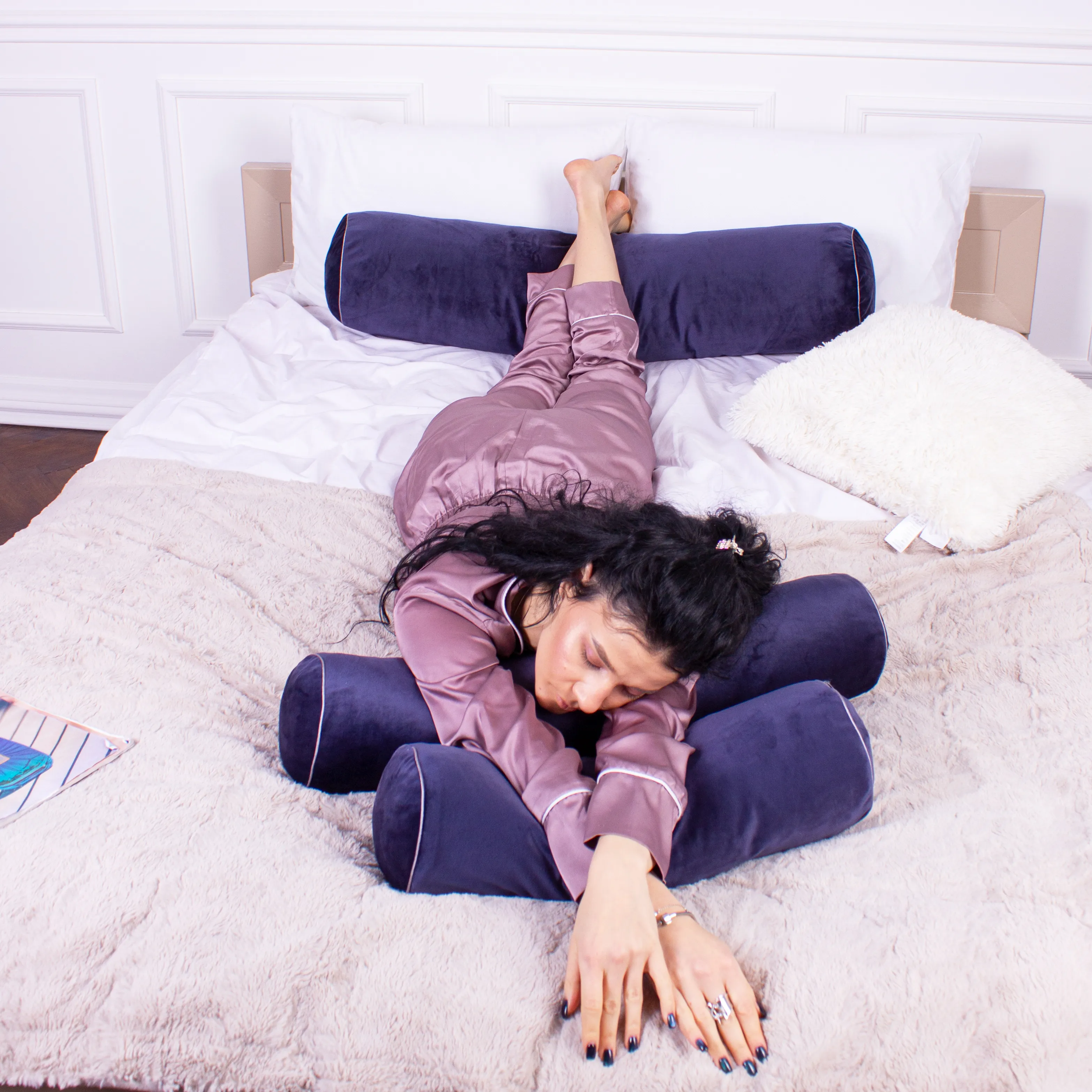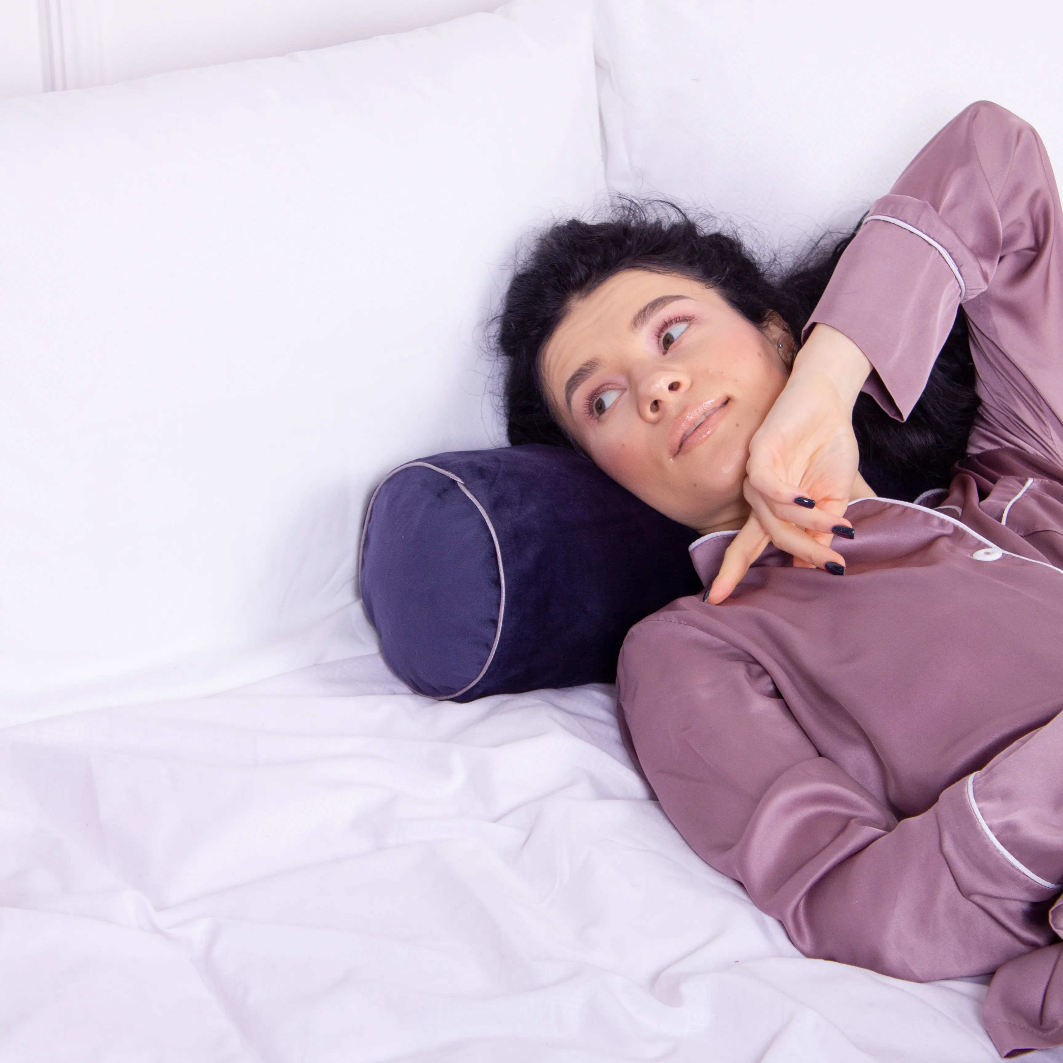 Подушка-валик №8398 Velvet Line 28-0006 Navy blue Tencel