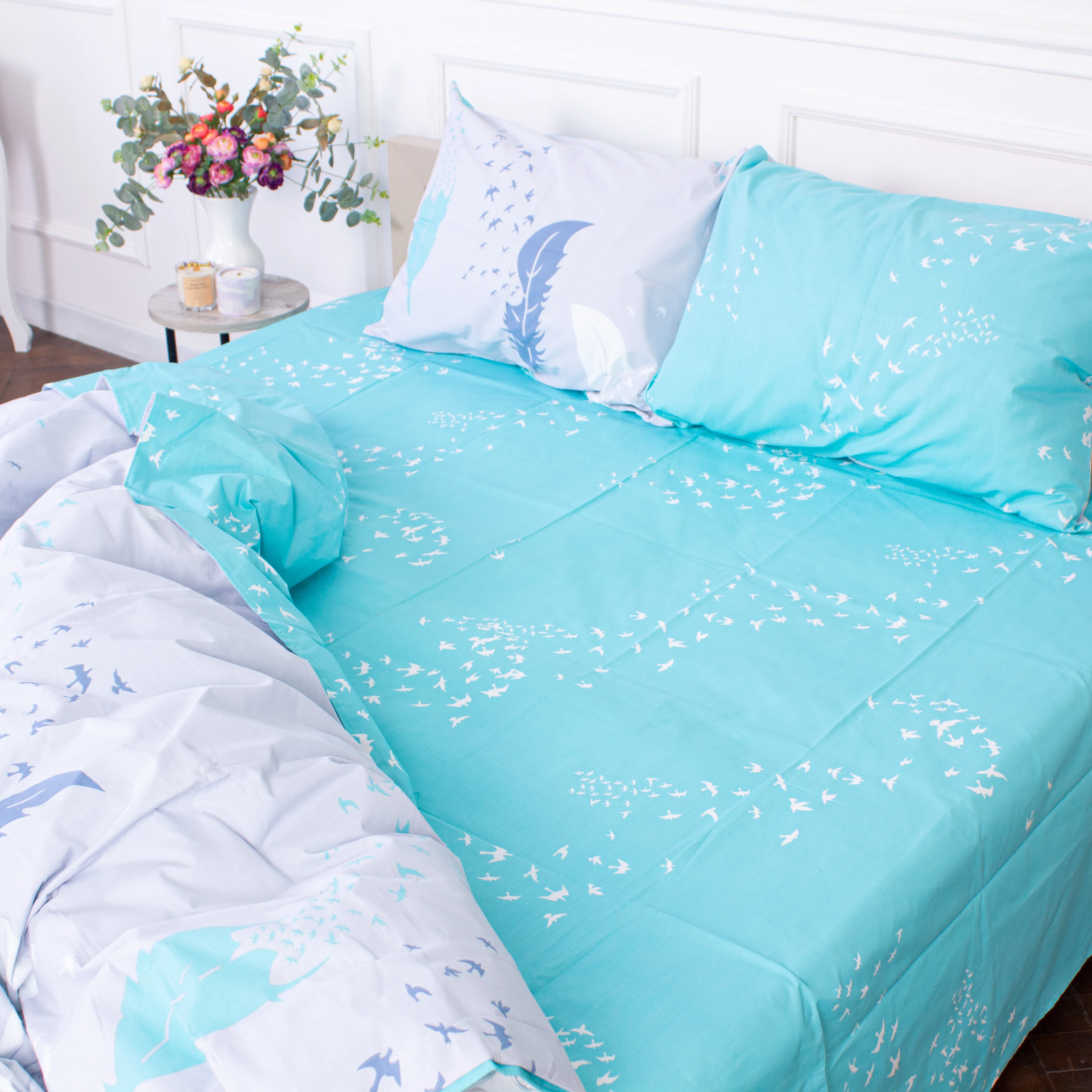Перед першим використанням комплекту обов'язкове попереднє прання за температури 30-35°С. Постільну білизну рекомендується прати індивідуально, окремо від інших речей. Прати й прасувати КПБ обов'язково вивернувши навиворіт