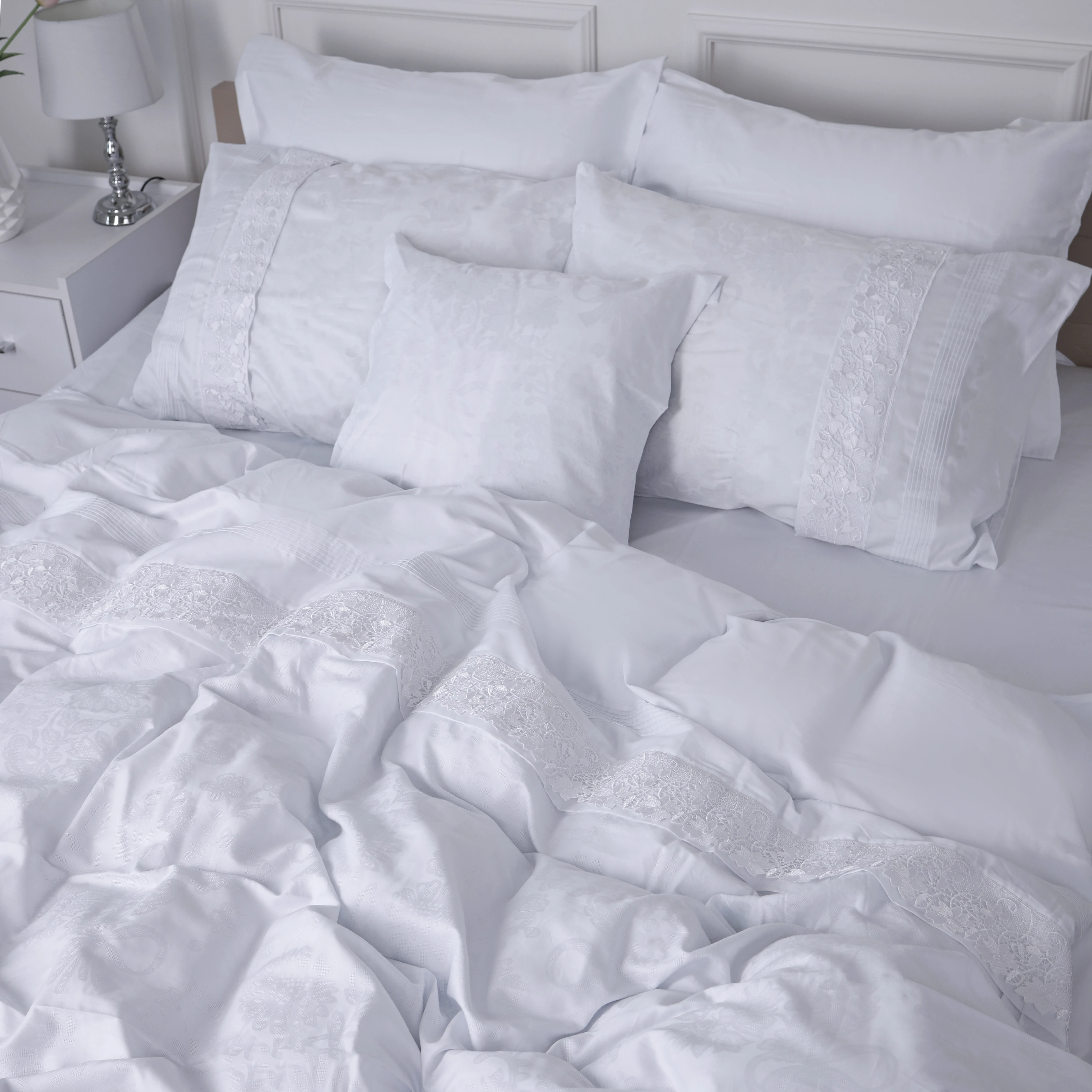 Неповторності, ексклюзивності та унікальності виробу додає процес його виготовлення. Ми приділяємо особливу увагу якості пошиття постільної білизни. Всі вироби проходять до 5 етапів контролю якості. Тільки ручна робота задіяна у виготовленні даних постільних комплектів, які завжди будуть тішити Вас не тільки своєю унікальністю, але і якістю пошиття, охайністю швів і красою! Ось цим і цінна ручна робота, в порівнянні з серійним виробництвом домашнього текстилю, що створюється на машинах. Ми приділяємо особливу увагу дрібницям, так як на них і будується бездоганність якості.