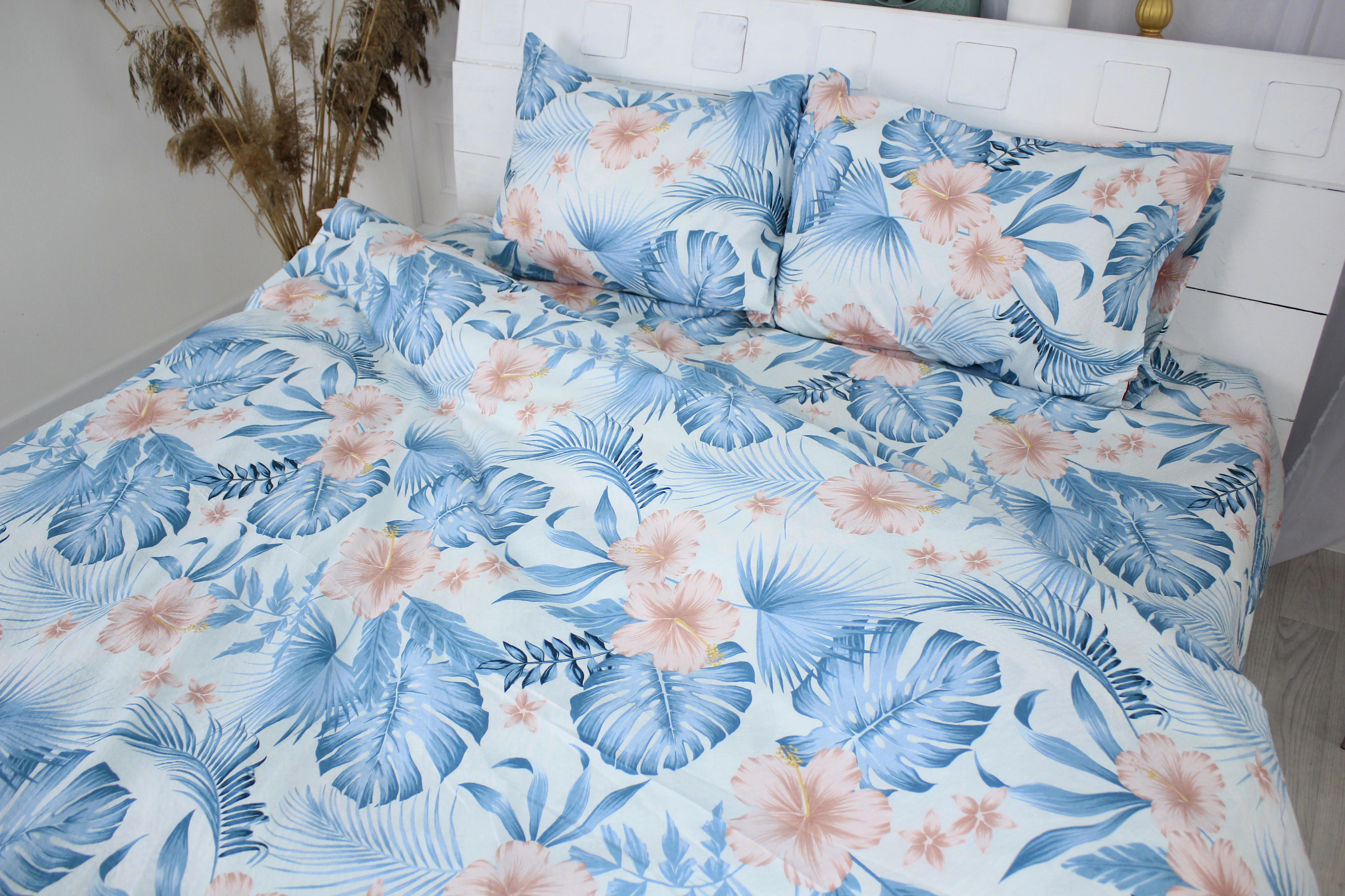 Усі наступні прання рекомендуємо проводити за температури 40°С делікатний режим, сушка, прасування при 150°С дозволені. Прати відповідно колірній гамі постільного.