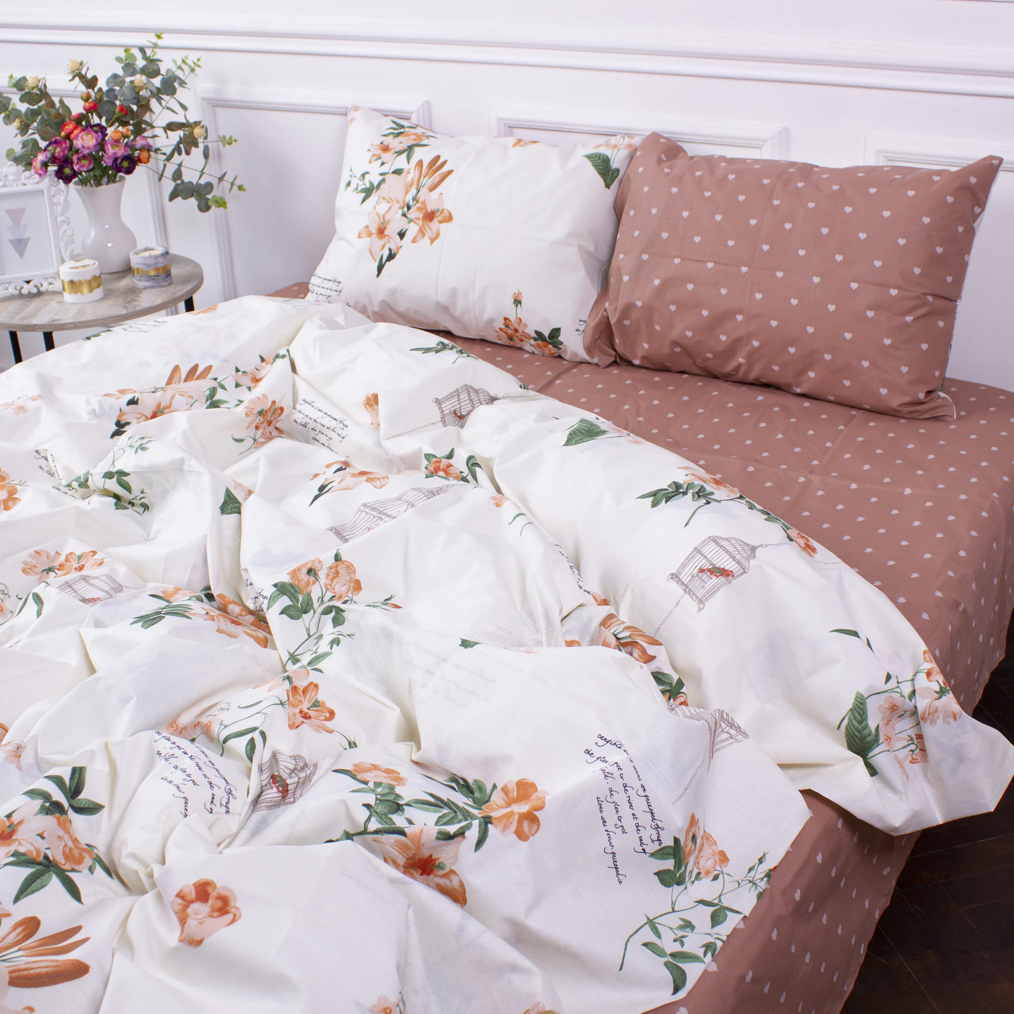 Перед першим використанням комплекту обов'язкове попереднє прання за температури 30-35°С. Постільну білизну рекомендується прати індивідуально, окремо від інших речей. Прати й прасувати КПБ обов'язково вивернувши навиворіт